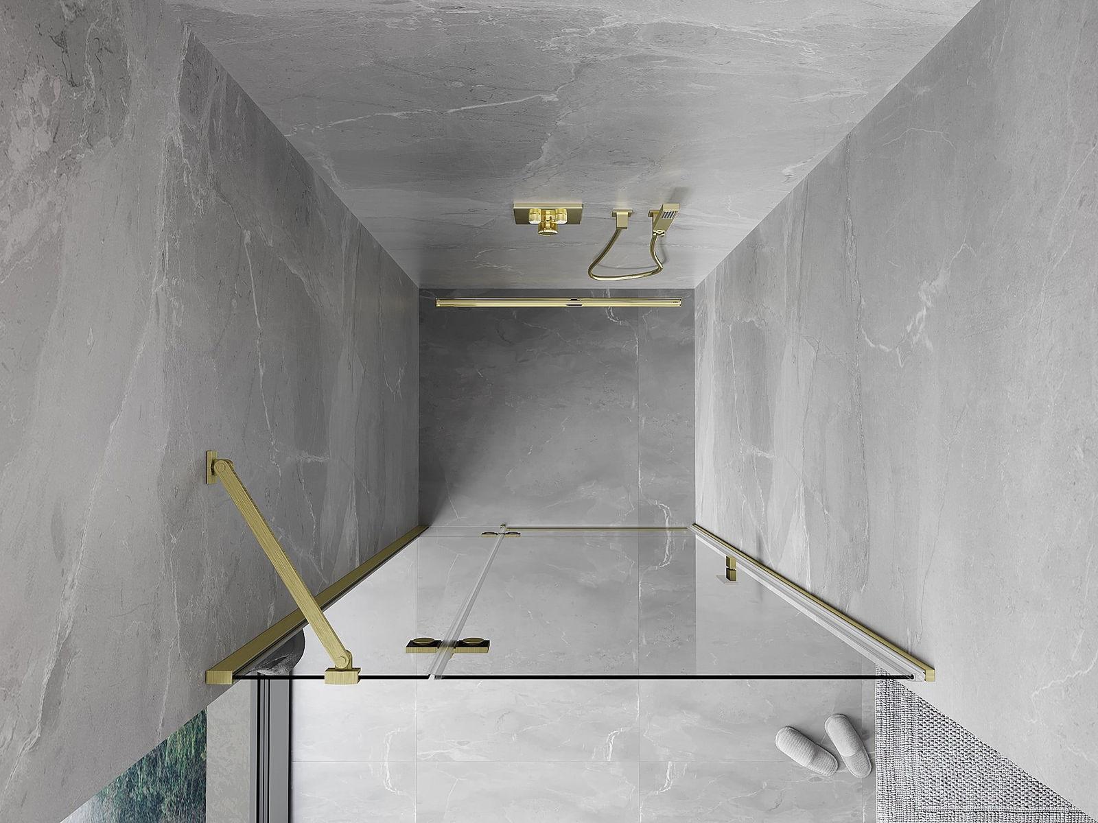 Handige en comfortabele greep is gemaakt van duurzaam en weerbestendig metaal. De modieuze vorm in combinatie met een afwerking die past bij de kleur van de profielen geeft het geheel een moderne en stijlvolle uitstraling, wat de esthetiek van elke badkamer benadrukt.