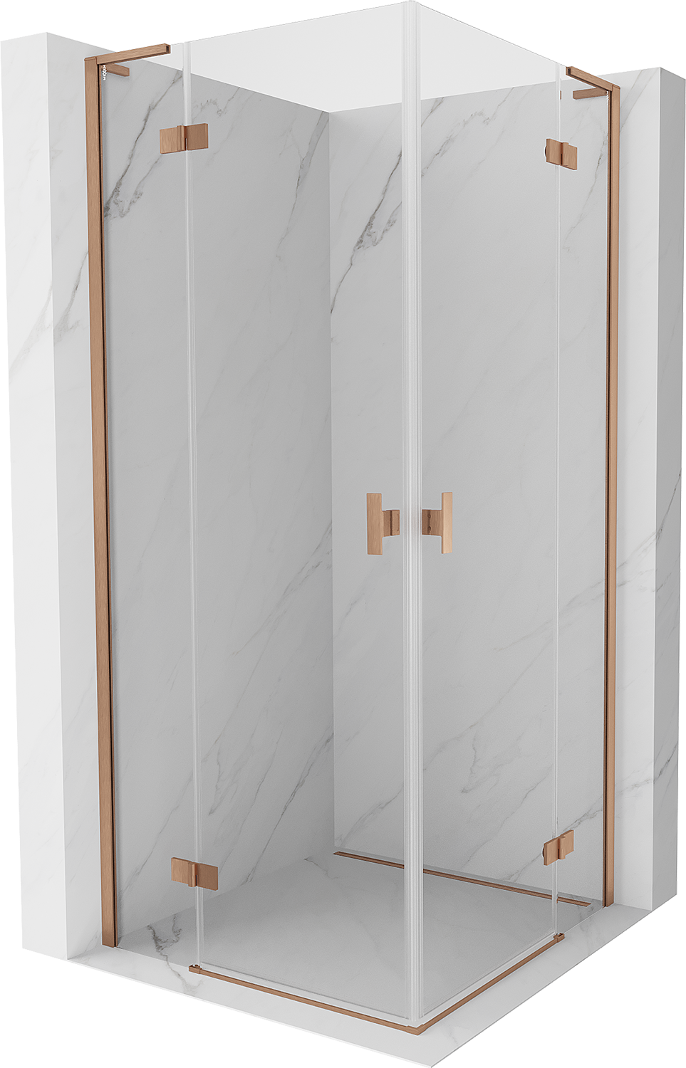 Mexen Mist-H L Duo douchecabine scharnierend 115 x 115 cm, transparant, geborsteld koper - 8A5L-115L-115P-65-00