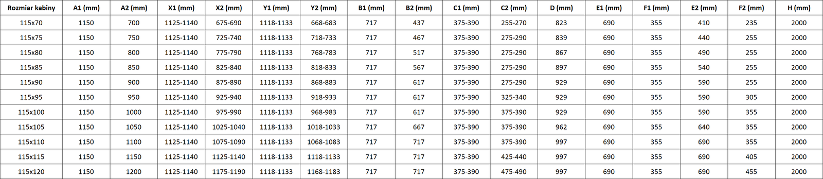 Grootte: 115x115 cm (linker deur 115 cm, rechter deur 115 cm)
