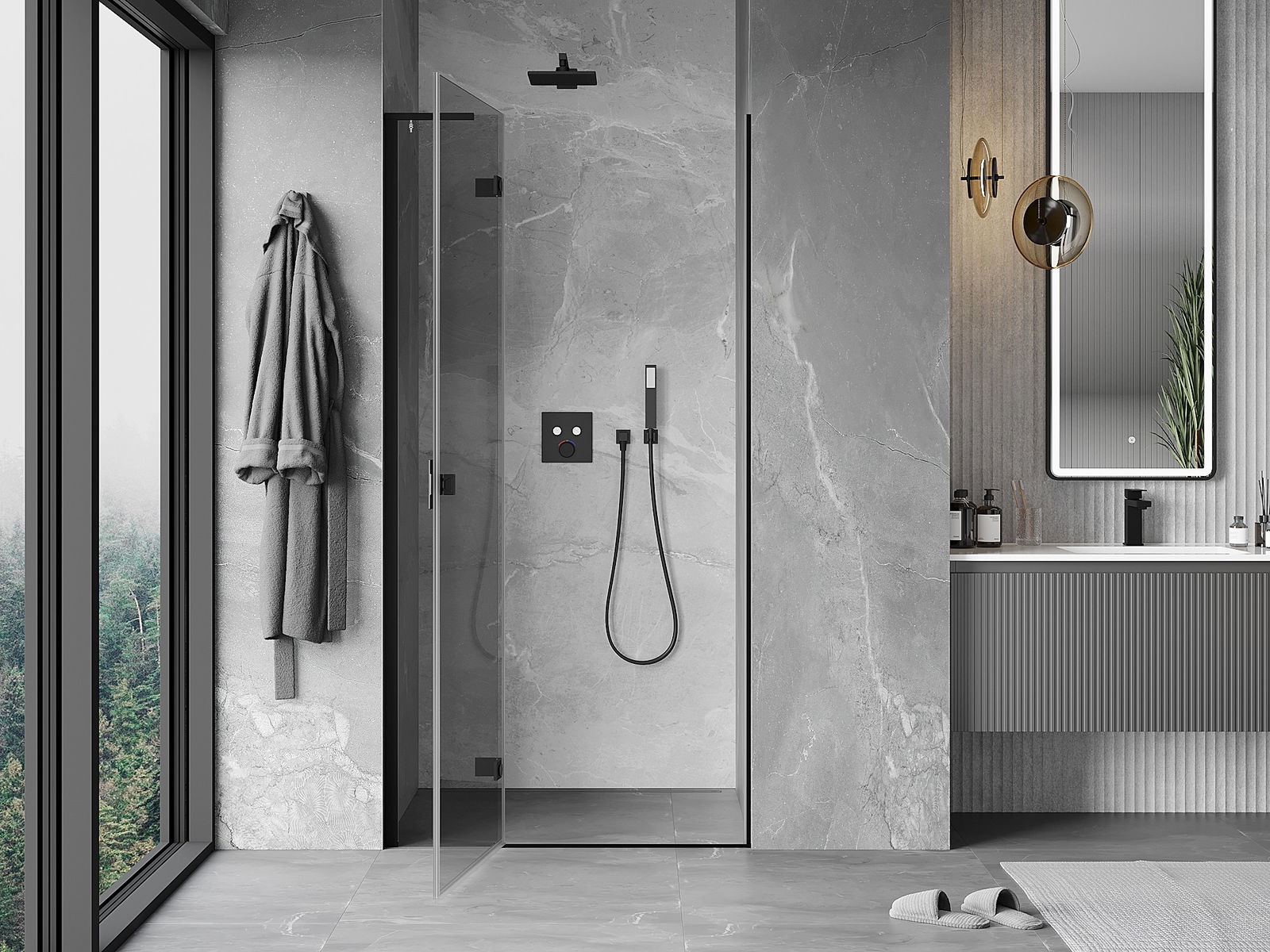 Handige en comfortabele greep is gemaakt van duurzaam en weerbestendig metaal. De modieuze vorm in combinatie met een afwerking die past bij de kleur van de profielen geeft het geheel een moderne en stijlvolle uitstraling, wat de esthetiek van elke badkamer benadrukt.