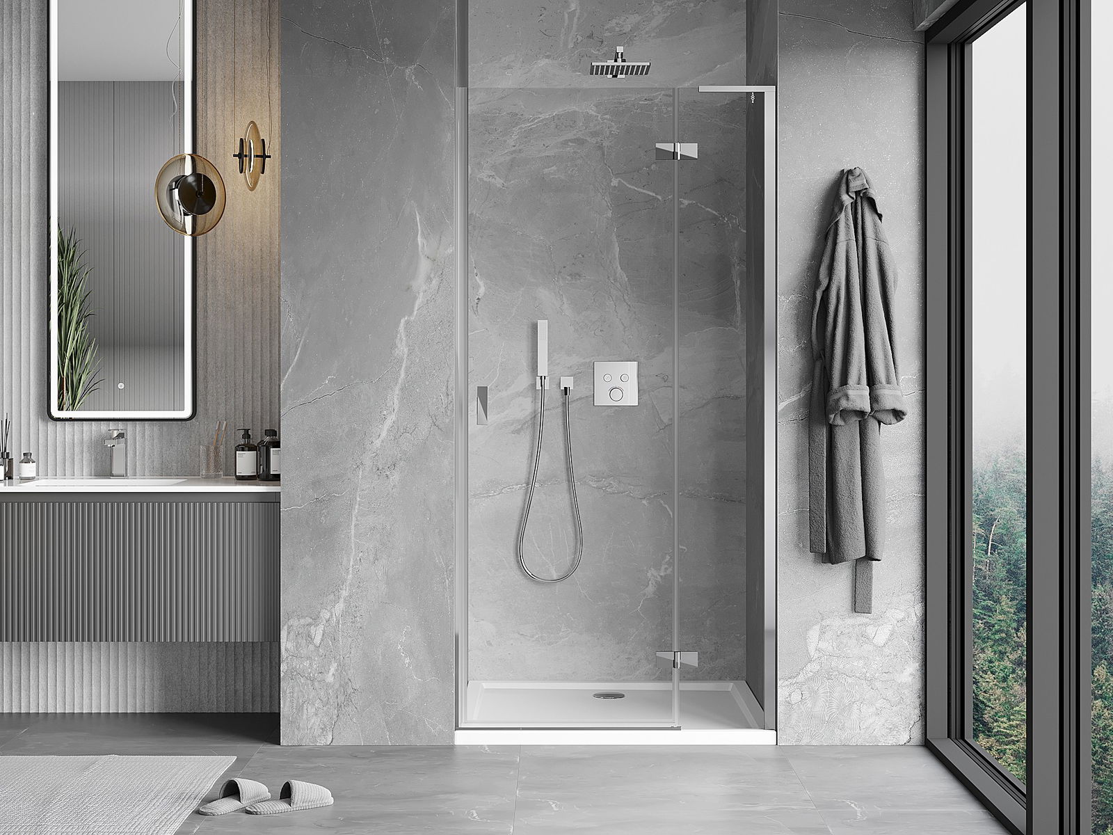 Draaideuren bieden maximale vrijheid tijdens het gebruik. Ze hebben stevige scharnieren gemaakt van duurzaam materiaal, die gemakkelijk schoon te houden zijn en gemakkelijke toegang tot het interieur van de cabine bieden.