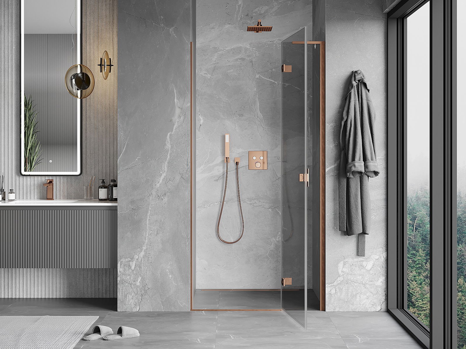 Handige en comfortabele greep is gemaakt van duurzaam en weerbestendig metaal. De modieuze vorm in combinatie met een afwerking die past bij de kleur van de profielen geeft het geheel een moderne en stijlvolle uitstraling, wat de esthetiek van elke badkamer benadrukt.