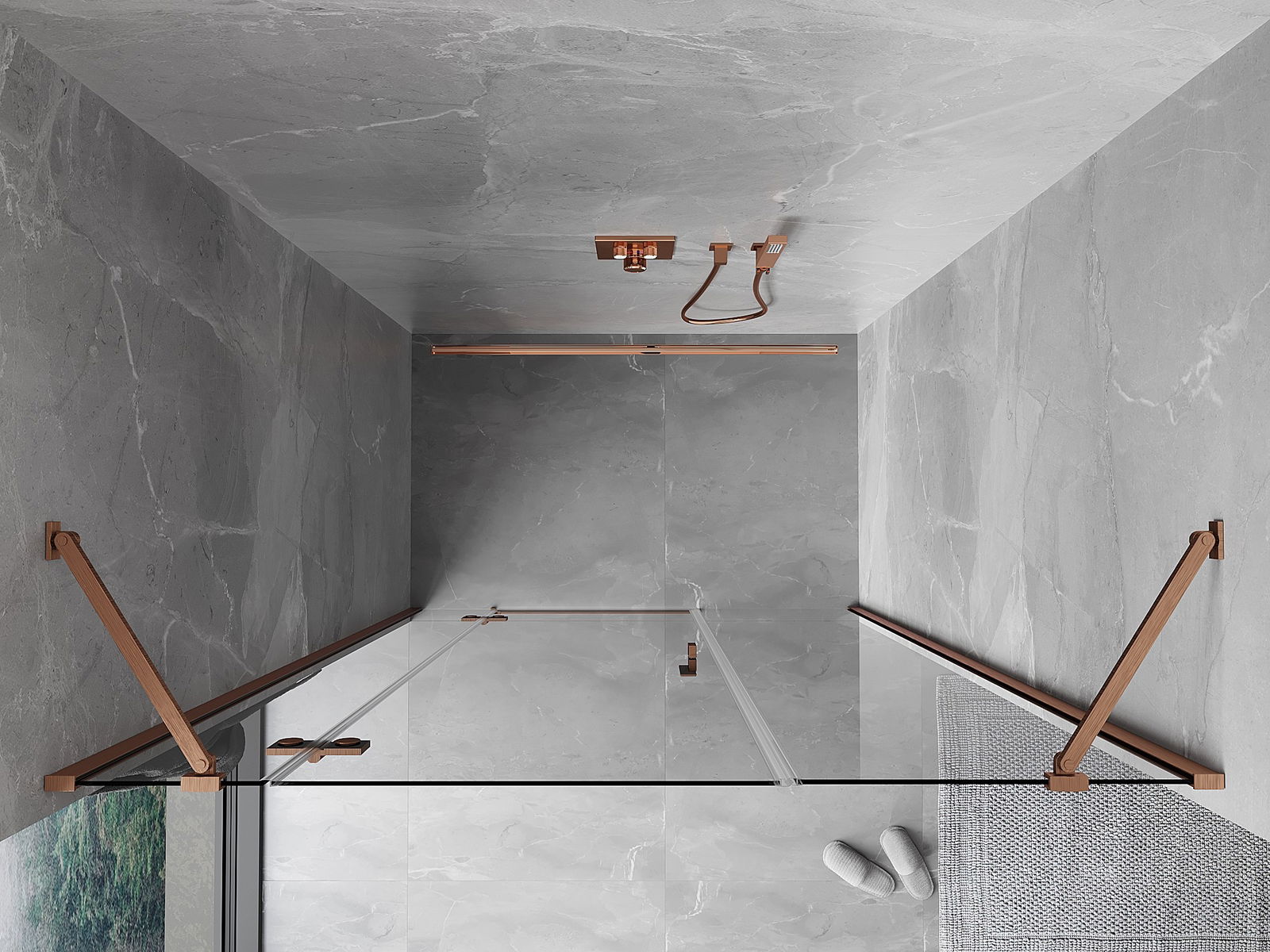 Handige en comfortabele greep is gemaakt van duurzaam en weerbestendig metaal. De modieuze vorm in combinatie met een afwerking die past bij de kleur van de profielen geeft het geheel een moderne en stijlvolle uitstraling, wat de esthetiek van elke badkamer benadrukt.