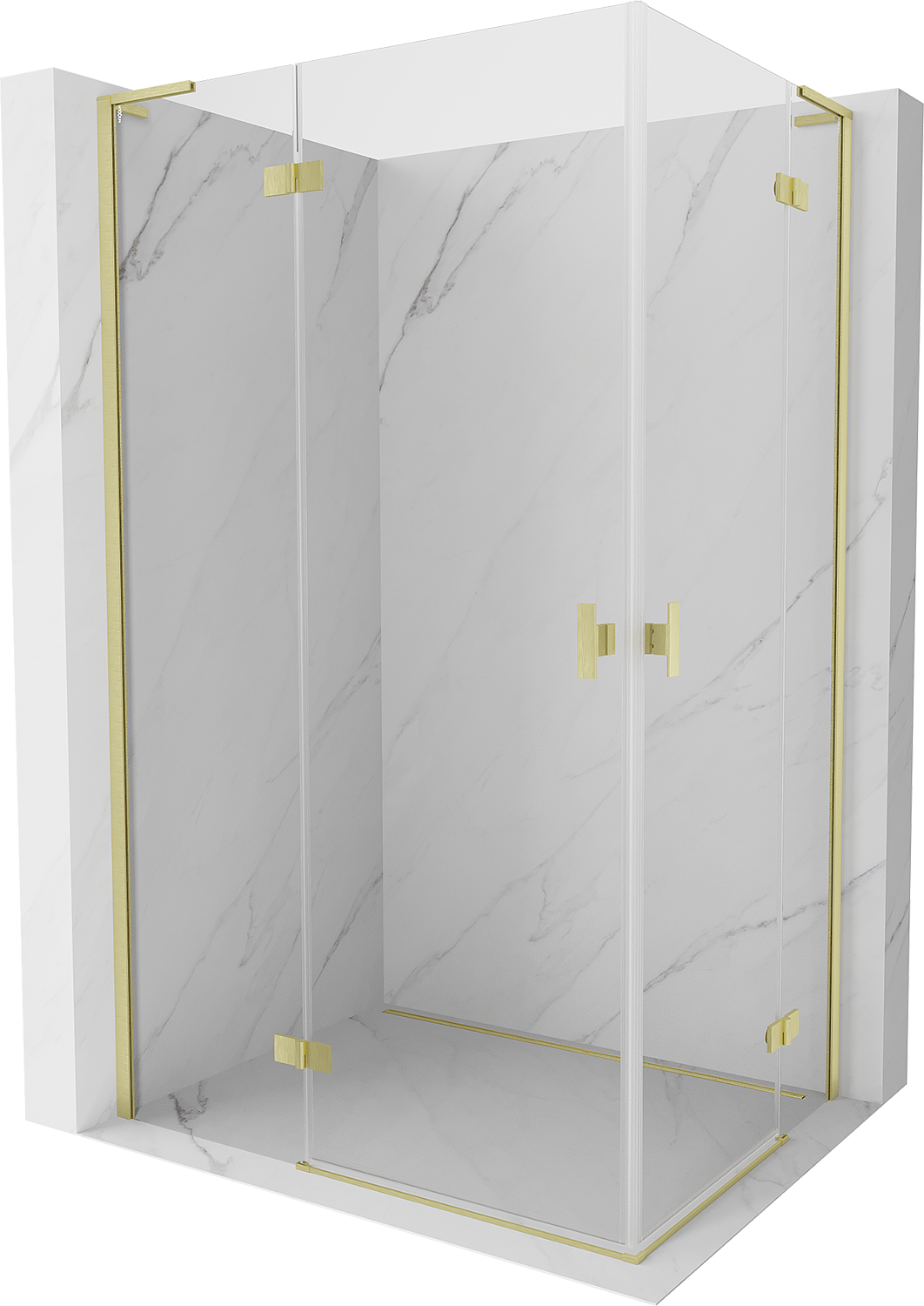 Mexen Mist-H L Duo douchecabine scharnierdeur links 90 x 75 cm, transparant, geborsteld goud - 8A5L-090L-075P-55-00