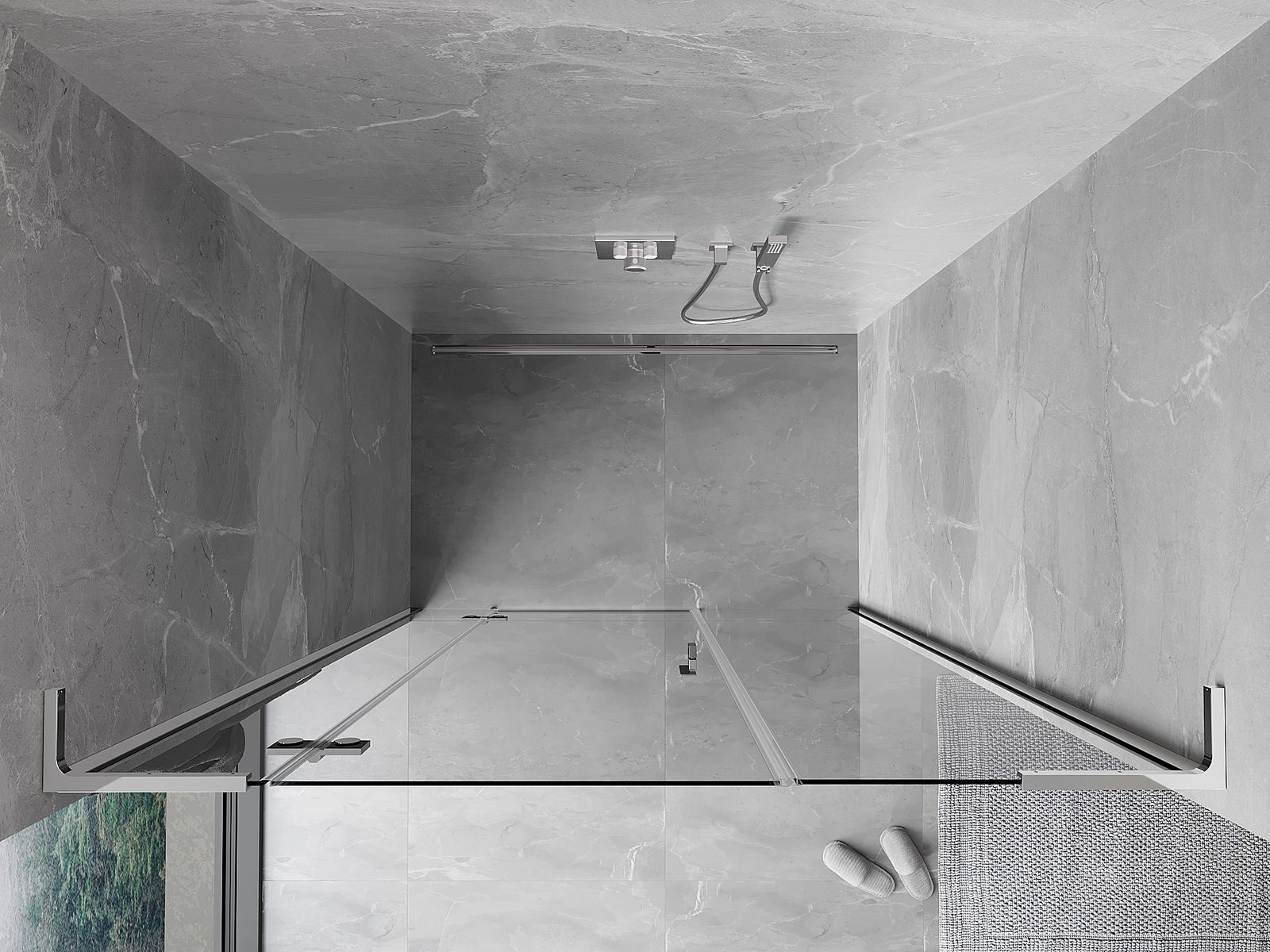 Handige en comfortabele greep is gemaakt van duurzaam en weerbestendig metaal. De modieuze vorm in combinatie met een afwerking die past bij de kleur van de profielen geeft het geheel een moderne en stijlvolle uitstraling, wat de esthetiek van elke badkamer benadrukt.