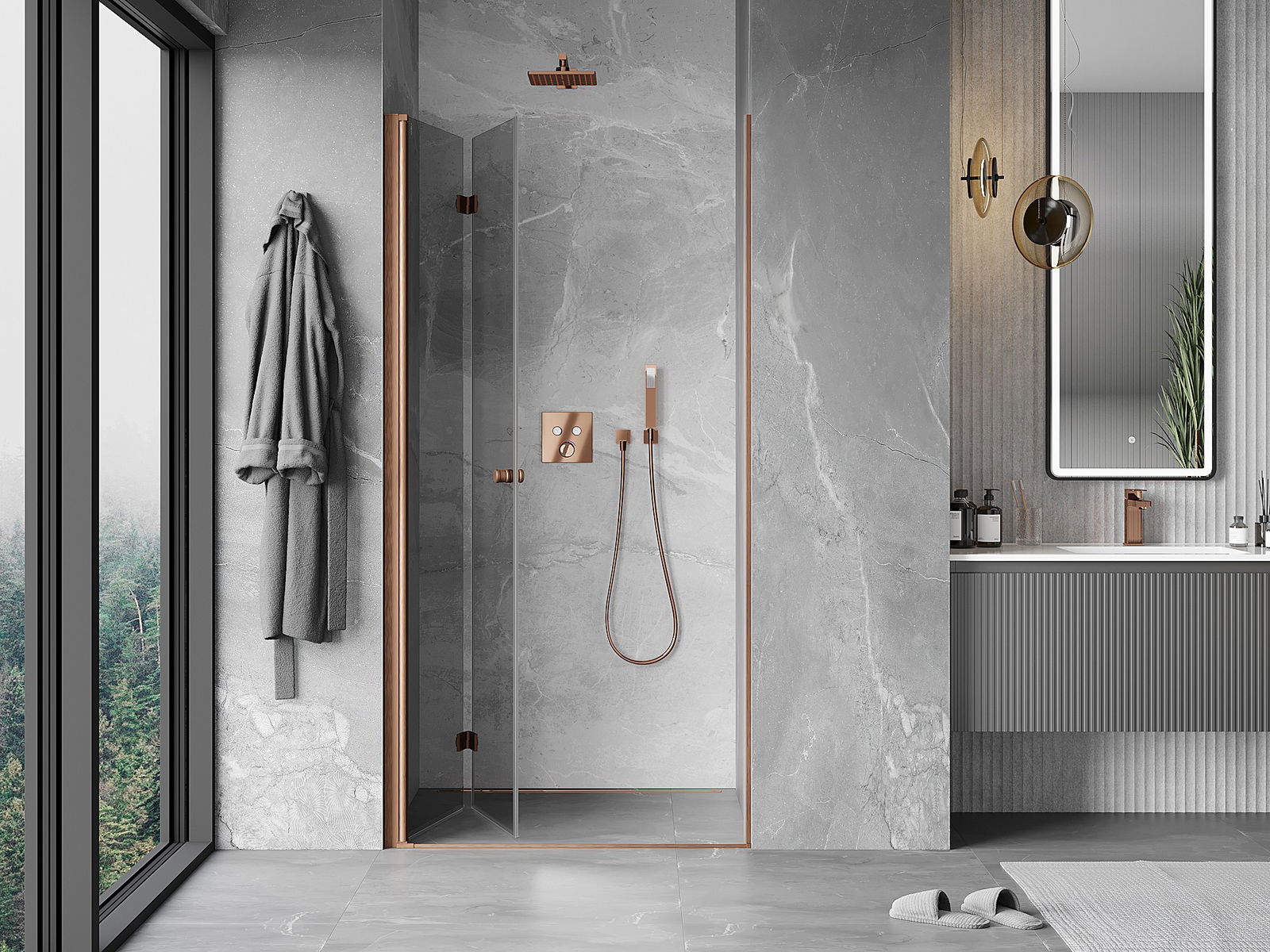 Handige en comfortabele greep is gemaakt van duurzaam en weerbestendig metaal. De modieuze vorm in combinatie met een afwerking die past bij de kleur van de profielen geeft het geheel een moderne en stijlvolle uitstraling, wat de esthetiek van elke badkamer benadrukt.