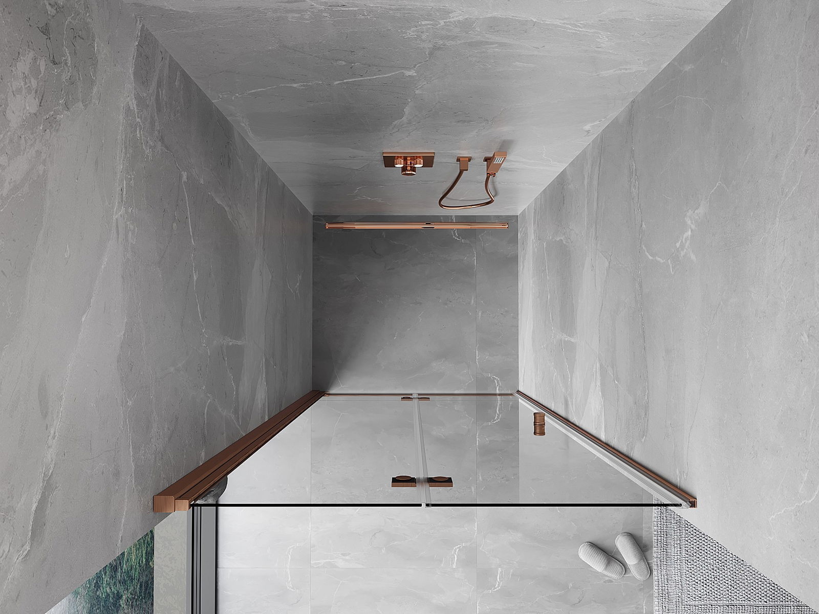 Handige en comfortabele greep is gemaakt van duurzaam en weerbestendig metaal. De modieuze vorm in combinatie met een afwerking die past bij de kleur van de profielen geeft het geheel een moderne en stijlvolle uitstraling, wat de esthetiek van elke badkamer benadrukt.