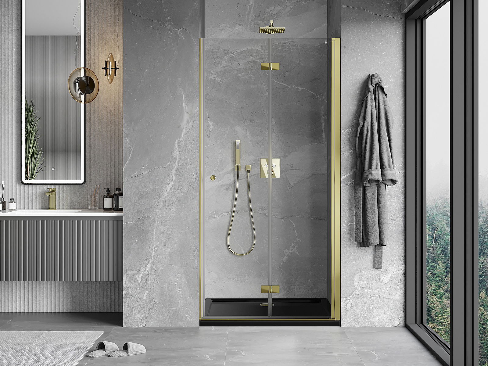 Mexen Mist-F vouwdeur voor douche rechts 60 cm, transparant, goud - 8A6-060-000-50-00-P