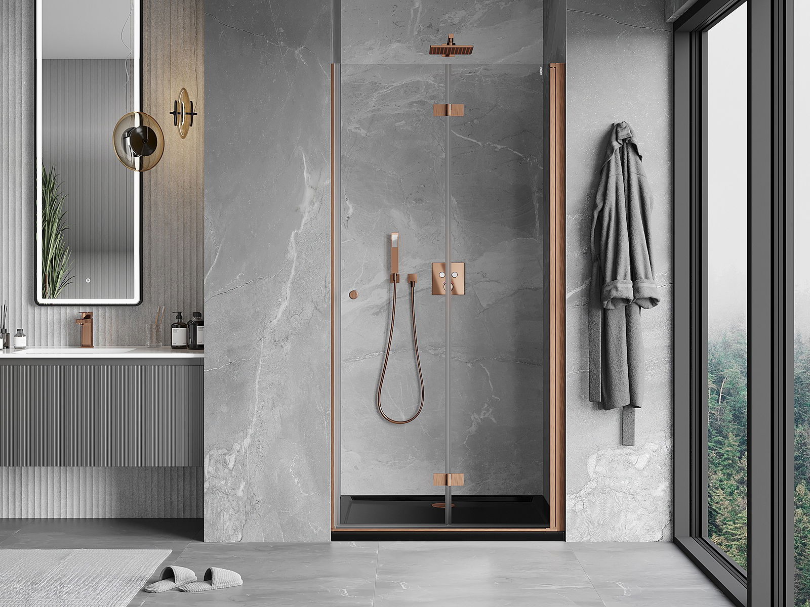 Handige en comfortabele greep is gemaakt van duurzaam en weerbestendig metaal. De modieuze vorm in combinatie met een afwerking die past bij de kleur van de profielen geeft het geheel een moderne en stijlvolle uitstraling, wat de esthetiek van elke badkamer benadrukt.