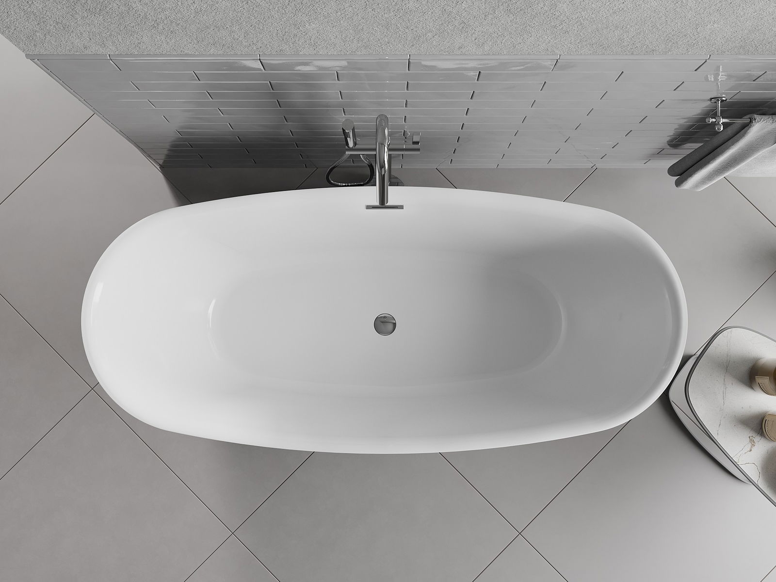 Het is een modern materiaal dat een elegante uitstraling combineert met hoge duurzaamheid. Het is bestand tegen mechanische beschadigingen, gemakkelijk schoon te maken en aangenaam om aan te raken. De transparante vorm en de dunne rand van het bad geven het een gevoel van lichtheid en een uniek karakter, waardoor het een opvallend accent vormt in de badkamerinrichting.