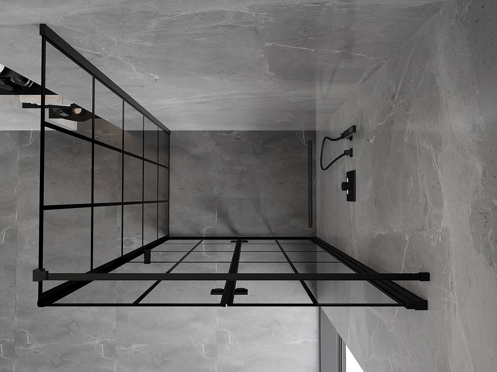 Mexen Mist-F inklapbare douchecabine rechts 70 x 85 cm, zwart raster, zwart - 8A6T-070-085-70-77-P
