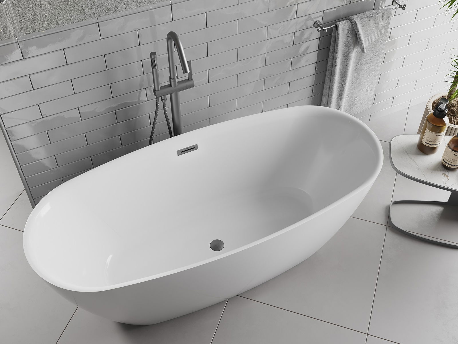 Het is een modern materiaal dat een elegante uitstraling combineert met hoge duurzaamheid. Het is bestand tegen mechanische beschadigingen, gemakkelijk schoon te maken en aangenaam om aan te raken. De transparante vorm en de dunne rand van het bad geven het een gevoel van lichtheid en een uniek karakter, waardoor het een opvallend accent vormt in de badkamerinrichting.