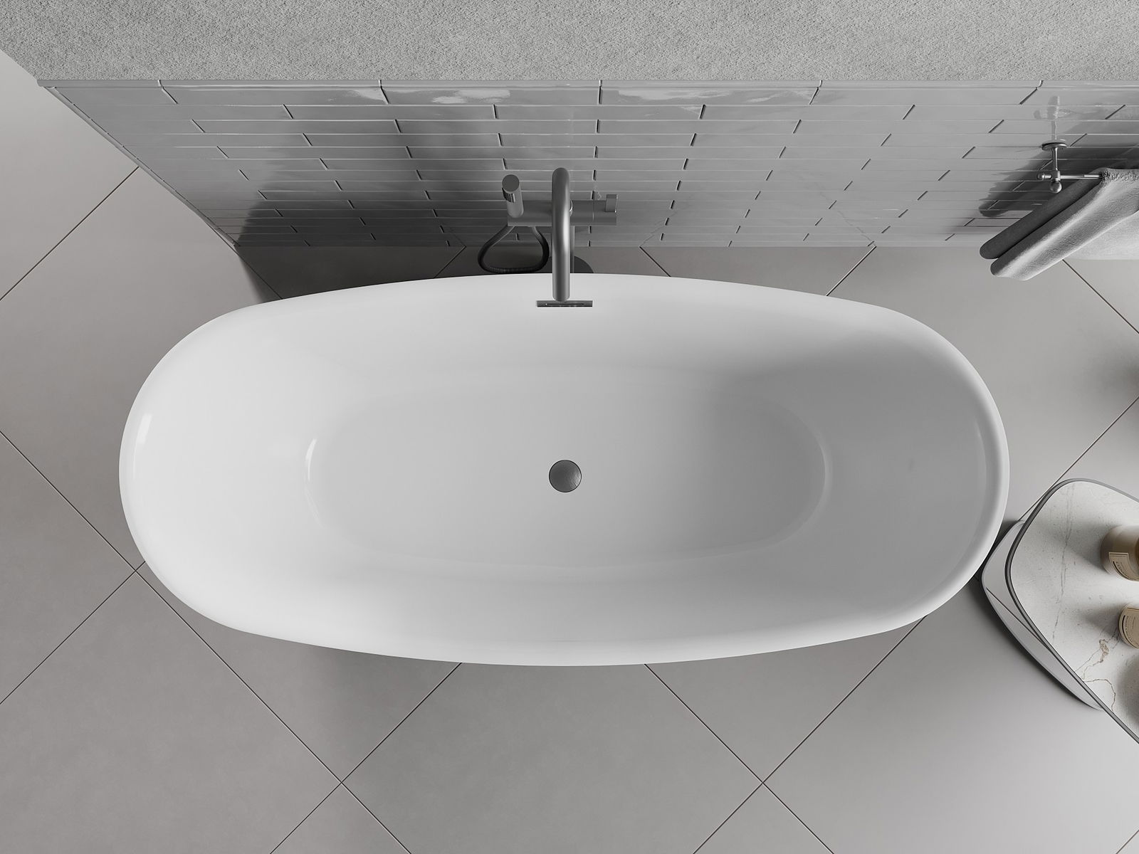 Dit moderne materiaal combineert een elegante uitstraling met een hoge duurzaamheid. Het is bestand tegen mechanische beschadigingen, gemakkelijk schoon te maken en voelt prettig aan. De transparante vorm en dunne rand van het bad geven het een licht en uniek karakter, wat een opvallende accentuering in de badkamer creëert.