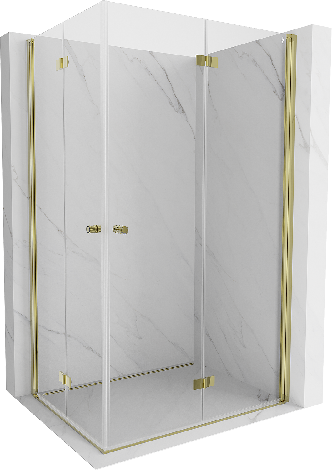 Mexen Mist-F Duo opklapbare douchecabine rechts 70 x 80 cm, transparant, goud geborsteld - 8A6-070L-080P-55-00