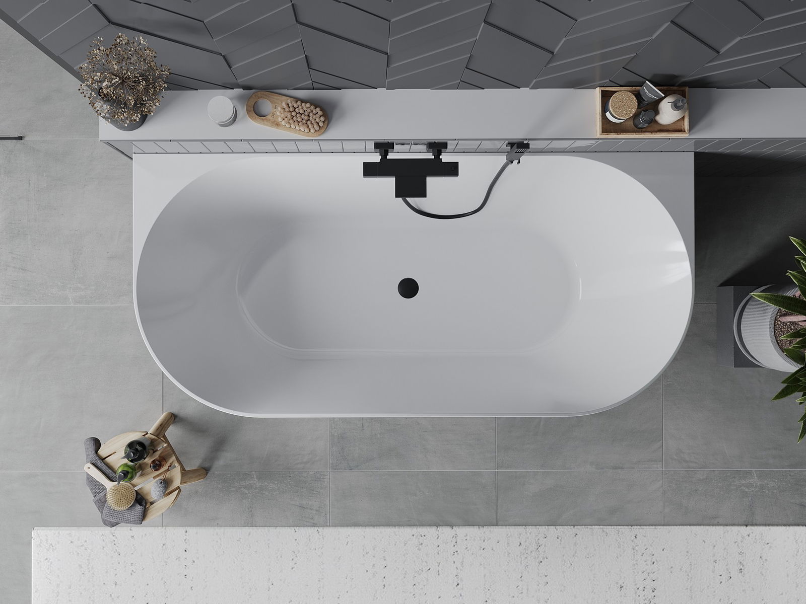 Het bad is uitgerust met verstelbare pootjes, die het mogelijk maken om het bad waterpas te zetten, zelfs op een oneffen oppervlak. Een praktische oplossing die meer stabiliteit en veiligheid biedt tijdens het gebruik en gemakkelijk te monteren is.