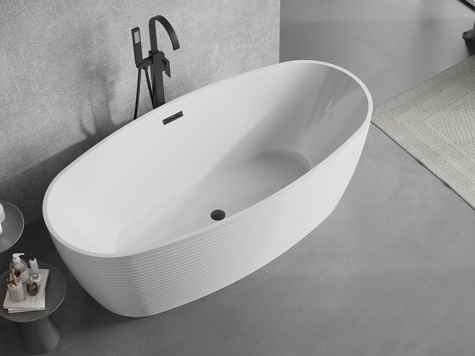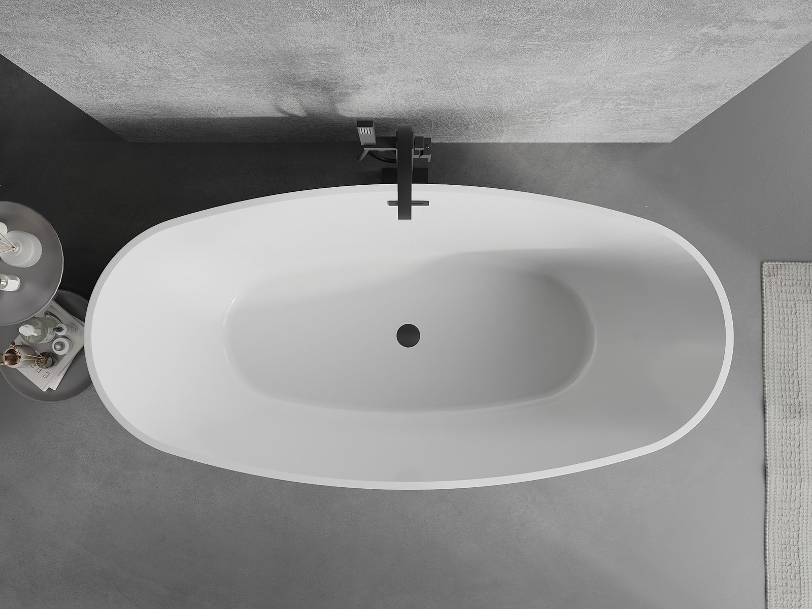 Het is een modern materiaal dat een elegante uitstraling combineert met hoge duurzaamheid. Het is bestand tegen mechanische beschadigingen, gemakkelijk schoon te maken en aangenaam om aan te raken. De transparante vorm en de dunne rand van het bad geven het een gevoel van lichtheid en een uniek karakter, waardoor het een opvallend accent vormt in de badkamerinrichting.