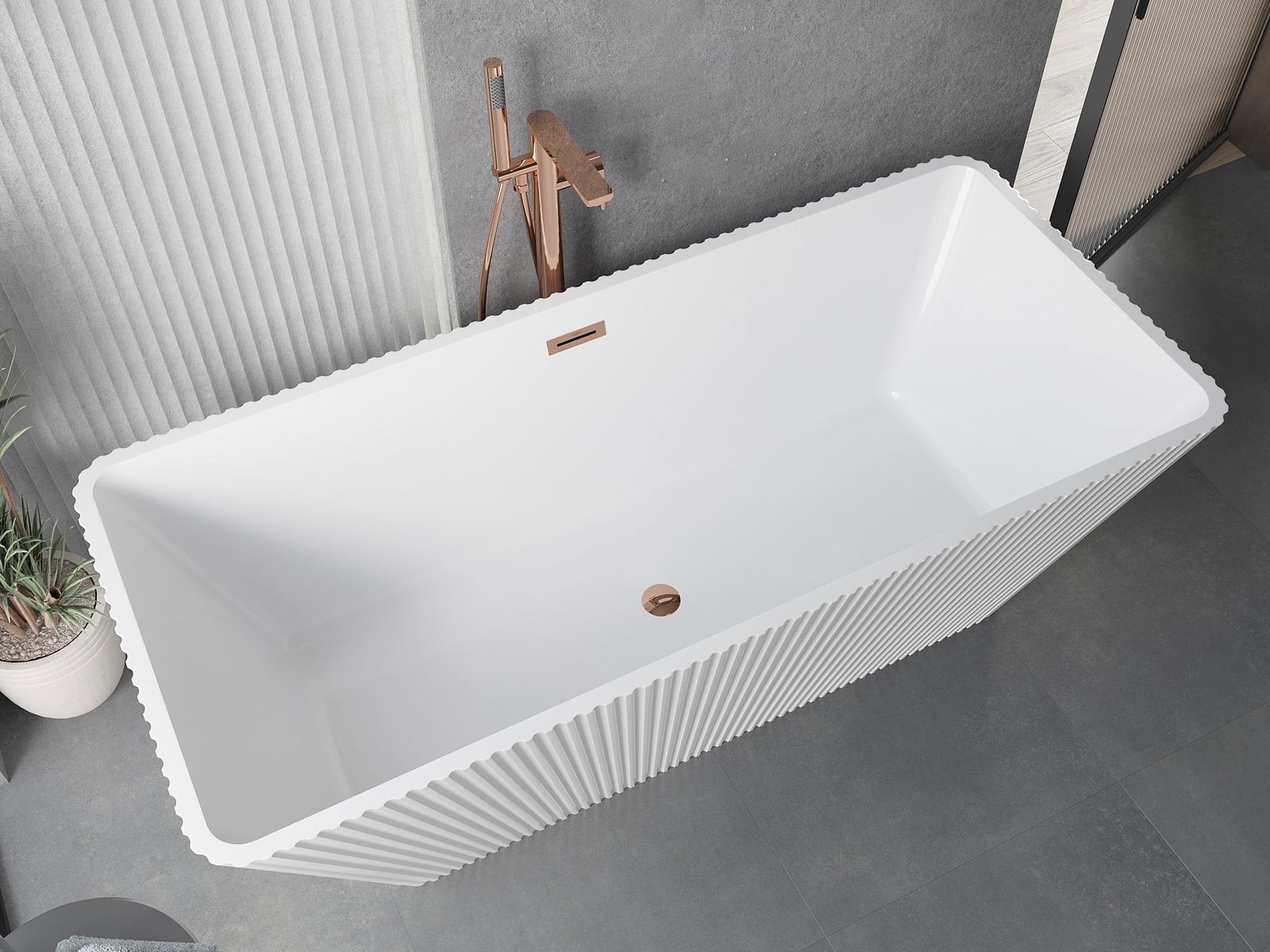 Het is een modern materiaal dat een elegante uitstraling combineert met hoge duurzaamheid. Het is bestand tegen mechanische beschadigingen, gemakkelijk schoon te maken en aangenaam om aan te raken. De transparante vorm en de dunne rand van het bad geven het een gevoel van lichtheid en een uniek karakter, waardoor het een opvallend accent vormt in de badkamerinrichting.
