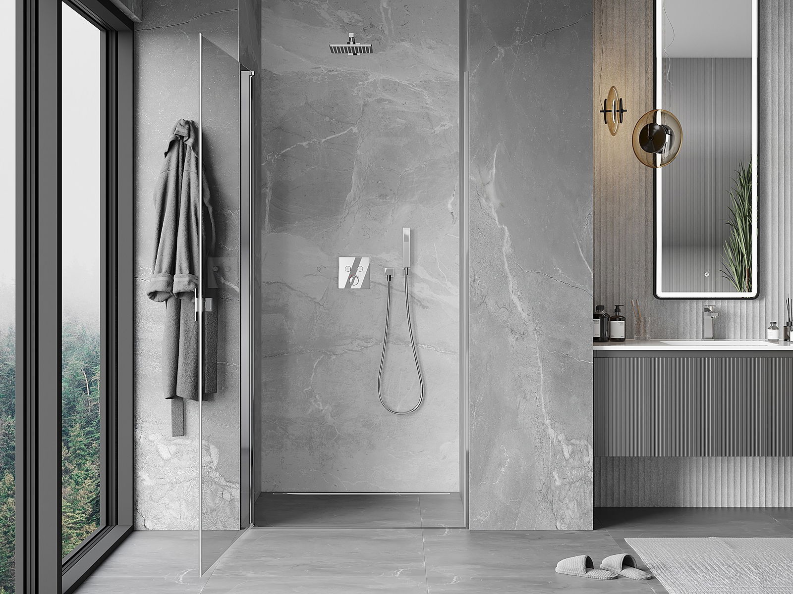 Handige en comfortabele greep is gemaakt van duurzaam en weerbestendig metaal. De modieuze vorm in combinatie met een afwerking die past bij de kleur van de profielen geeft het geheel een moderne en stijlvolle uitstraling, wat de esthetiek van elke badkamer benadrukt.