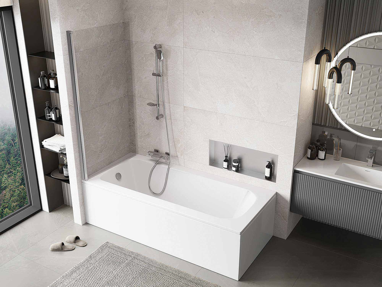 Effectieve bescherming tegen het verspreiden van water tijdens het baden. Het scherm heeft afdichtingen die perfect passen bij de glasplaat en de rand van het bad. Functionele oplossing die veiligheid en eenvoudig onderhoud garandeert.