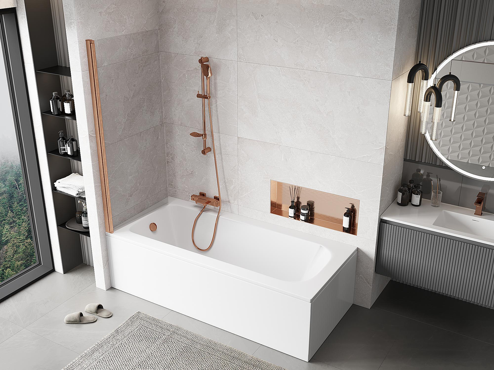 Effectieve bescherming tegen het verspreiden van water tijdens het baden. Het scherm heeft afdichtingen die perfect passen bij de glasplaat en de rand van het bad. Functionele oplossing die veiligheid en eenvoudig onderhoud garandeert.