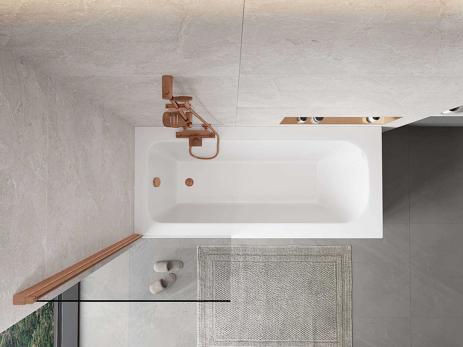 Mexen Mist badwand 1-delig 70 x 150 cm, transparant, geborsteld koper - 8A9-070-001-65-00