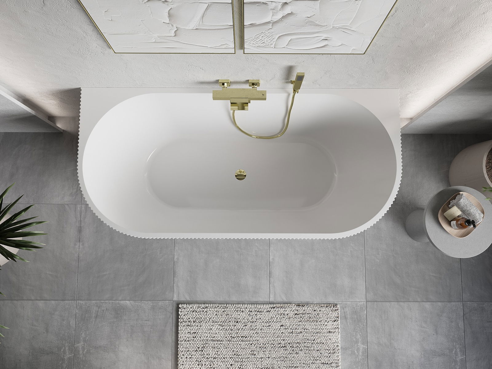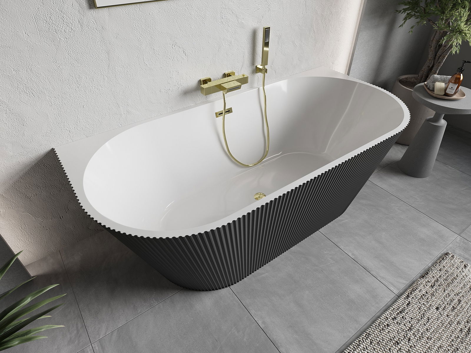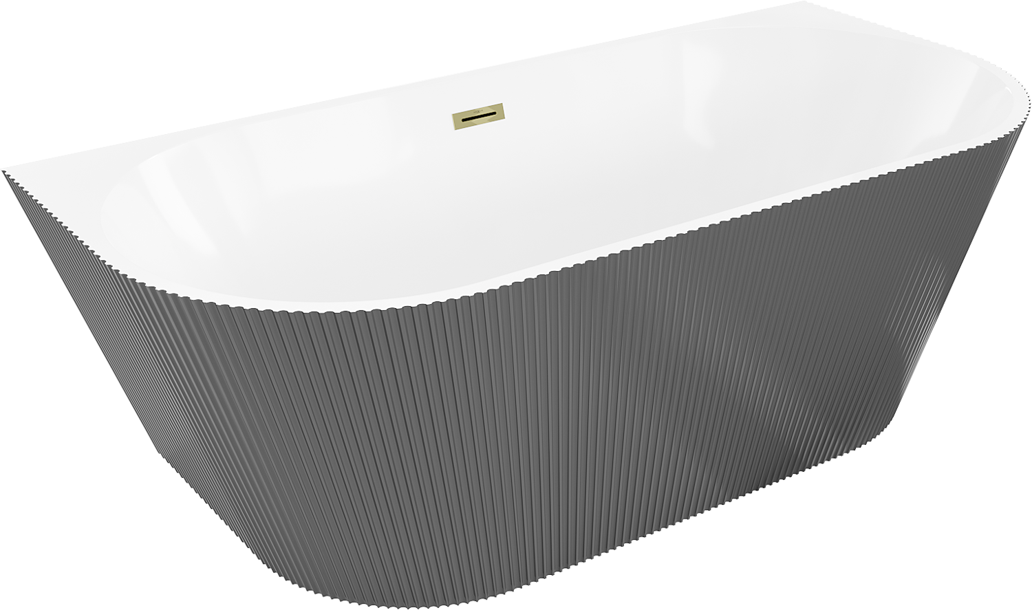 Mexen Oris vrijstaande geribbelde badkuip tegen de wand 150 x 75 cm, wit/grijs, overloop goud - 52871507562-50