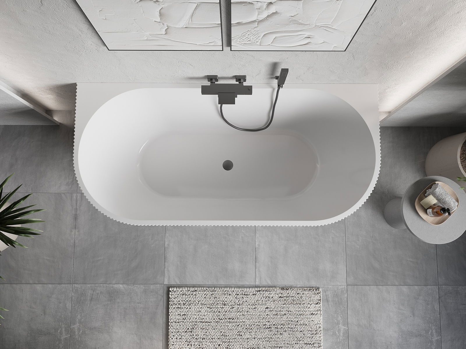 Dit moderne materiaal combineert een elegante uitstraling met een hoge duurzaamheid. Het is bestand tegen mechanische beschadigingen, gemakkelijk schoon te maken en voelt prettig aan. De transparante vorm en dunne rand van het bad geven het een licht en uniek karakter, wat een opvallende accentuering in de badkamer creëert.