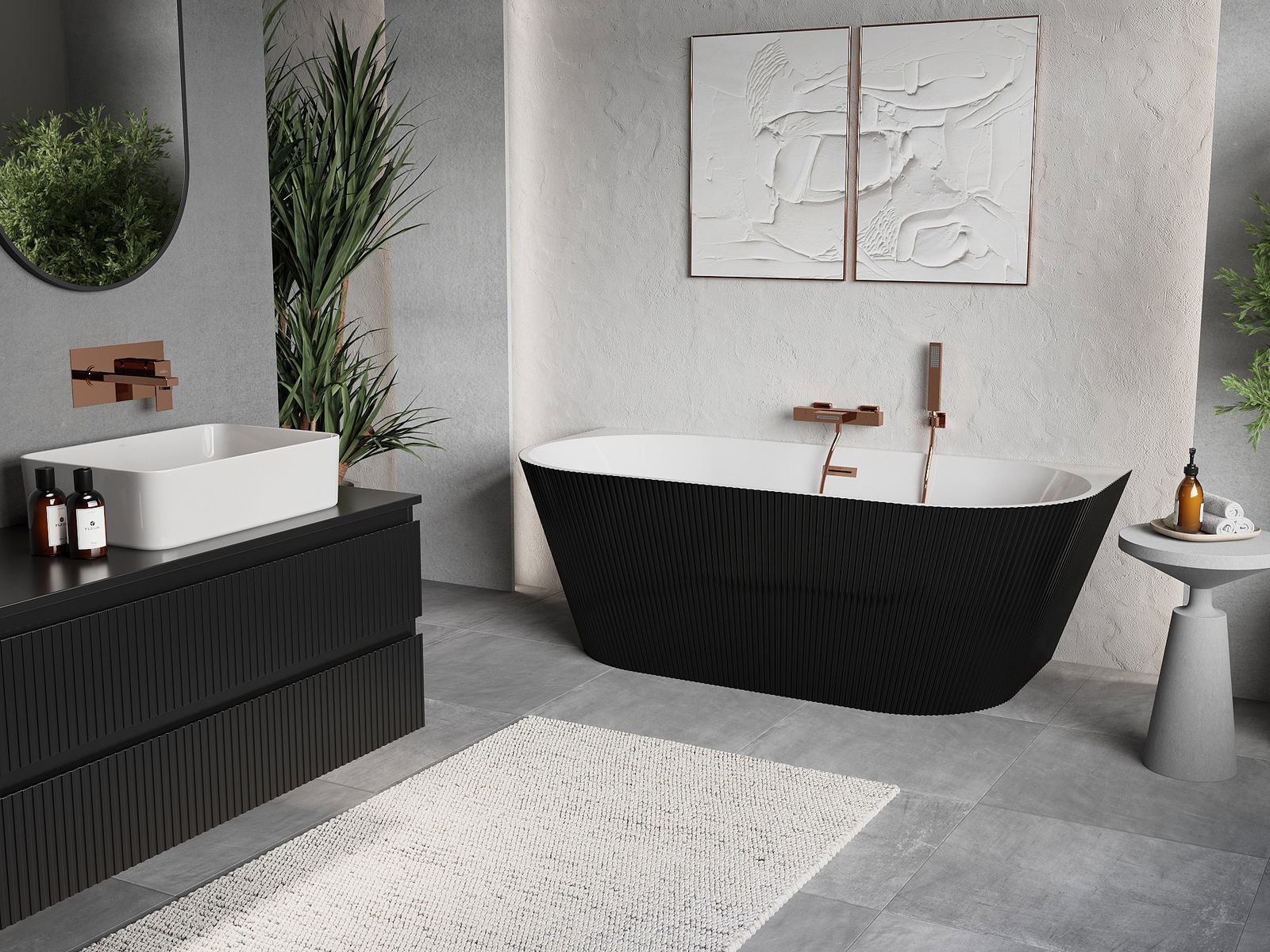 Dit moderne materiaal combineert een elegante uitstraling met een hoge duurzaamheid. Het is bestand tegen mechanische beschadigingen, gemakkelijk schoon te maken en voelt prettig aan. De transparante vorm en dunne rand van het bad geven het een licht en uniek karakter, wat een opvallende accentuering in de badkamer creëert.