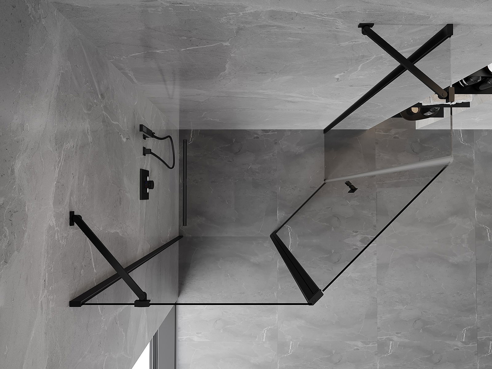 Mexen Mist vijfhoekige asymmetrische draaideur douchecabine 100 x 90 cm, transparant, zwart - 8A8-100-090-70-00