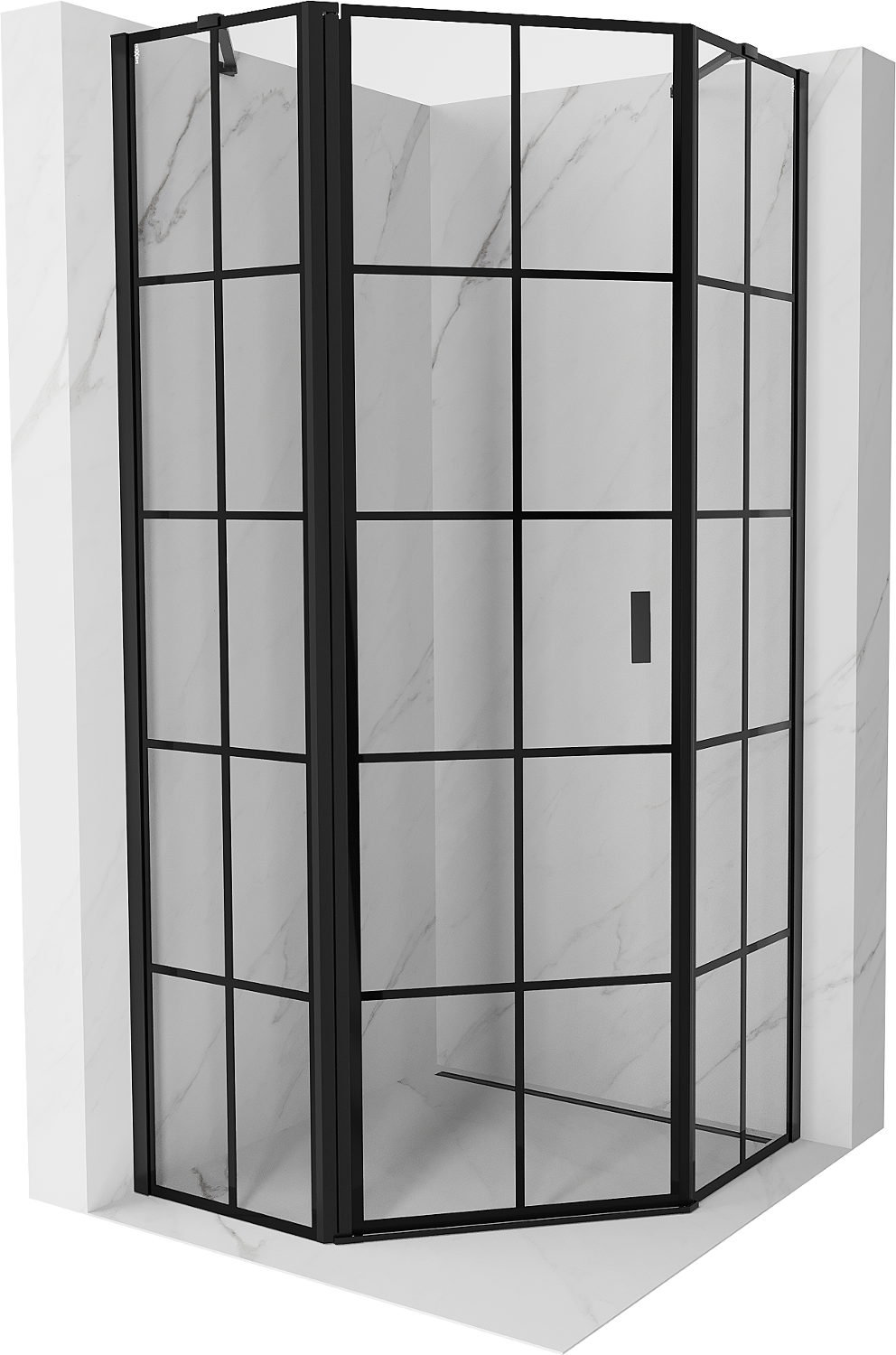 Mexen Mist vijfhoekige douchecabine scharnierend links 90 x 90 cm, zwart raster, zwart - 8A8-090-090-70-77-L