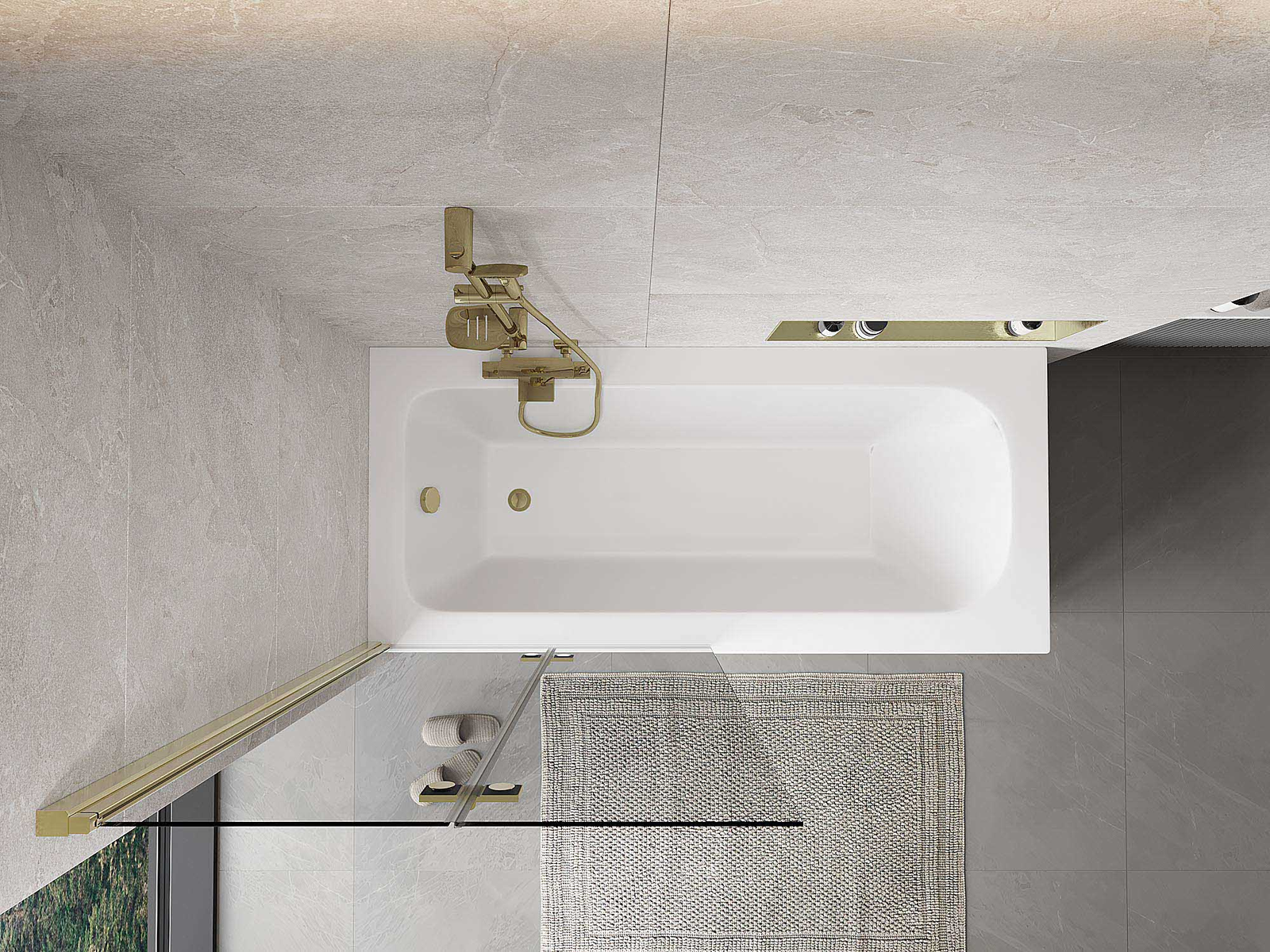 Scherm gemaakt van twee vleugels met de mogelijkheid om het op te vouwen. Deze oplossing bespaart meer ruimte in de badkamer en maakt het gemakkelijk om de overgebleven ruimte te gebruiken wanneer we de badzone niet gebruiken.