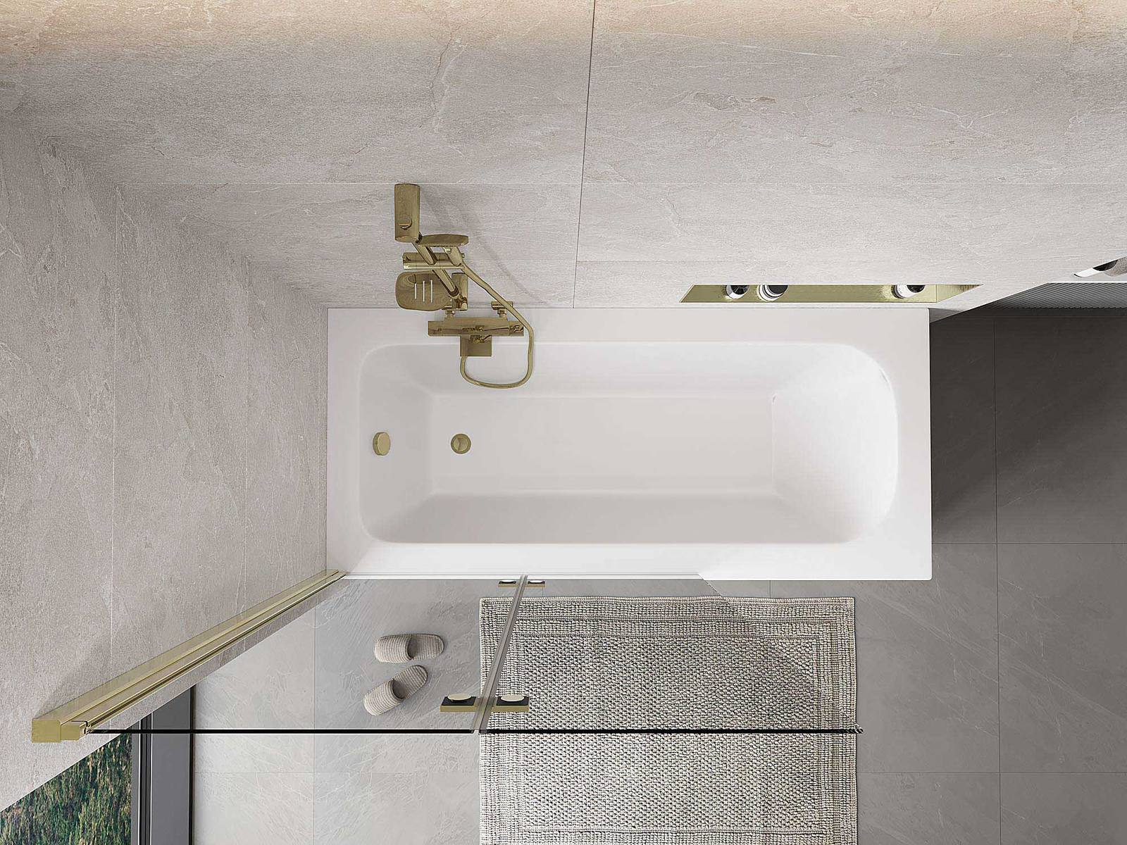 Scherm gemaakt van twee vleugels met de mogelijkheid om het op te vouwen. Deze oplossing bespaart meer ruimte in de badkamer en maakt het gemakkelijk om de overgebleven ruimte te gebruiken wanneer we de badzone niet gebruiken.