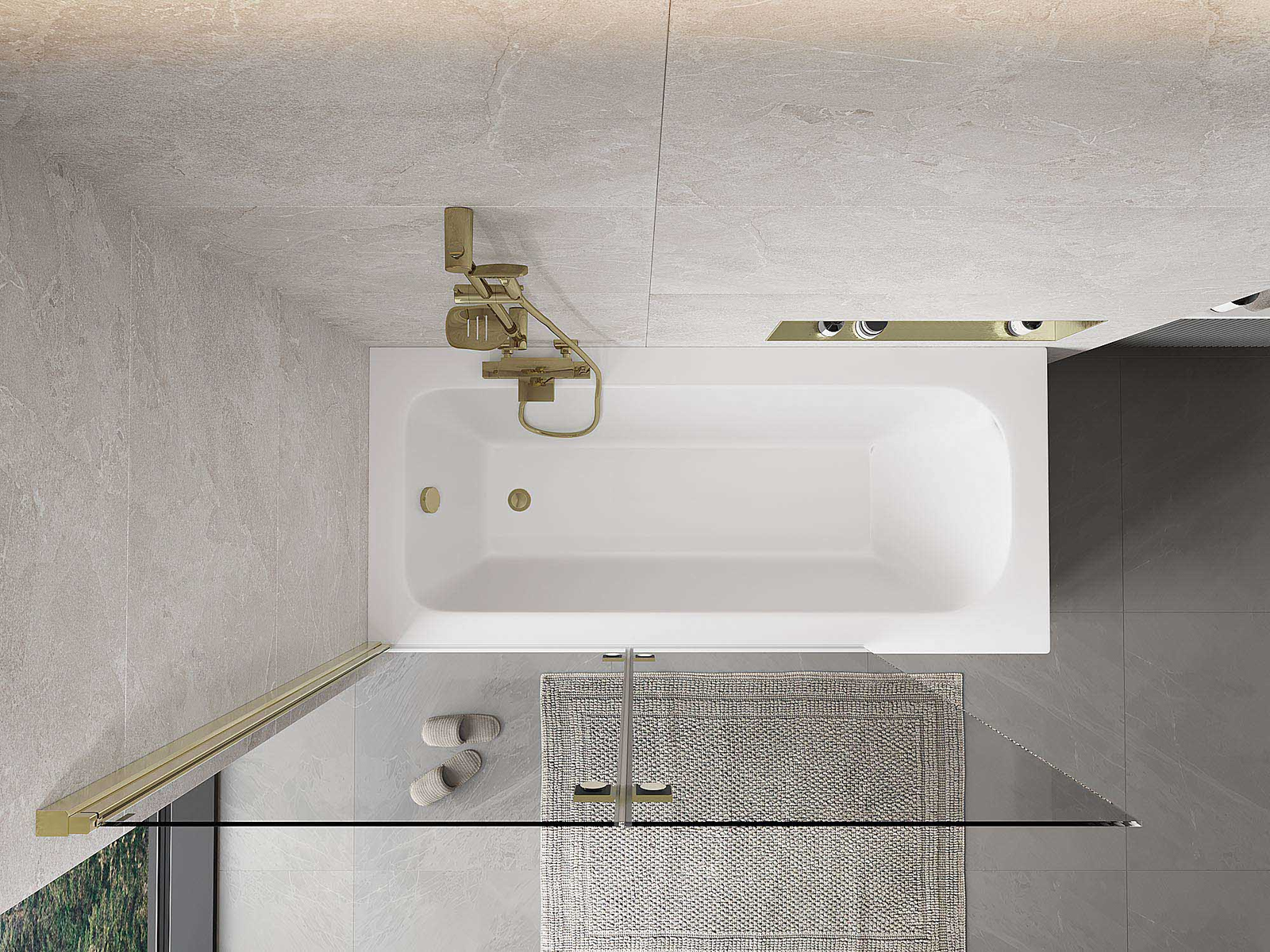 Scherm gemaakt van twee vleugels met de mogelijkheid om het op te vouwen. Deze oplossing bespaart meer ruimte in de badkamer en maakt het gemakkelijk om de overgebleven ruimte te gebruiken wanneer we de badzone niet gebruiken.