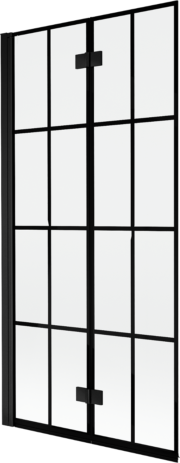 Scherm gemaakt van twee vleugels met de mogelijkheid om het op te vouwen. Deze oplossing bespaart meer ruimte in de badkamer en maakt het gemakkelijk om de overgebleven ruimte te gebruiken wanneer we de badzone niet gebruiken.