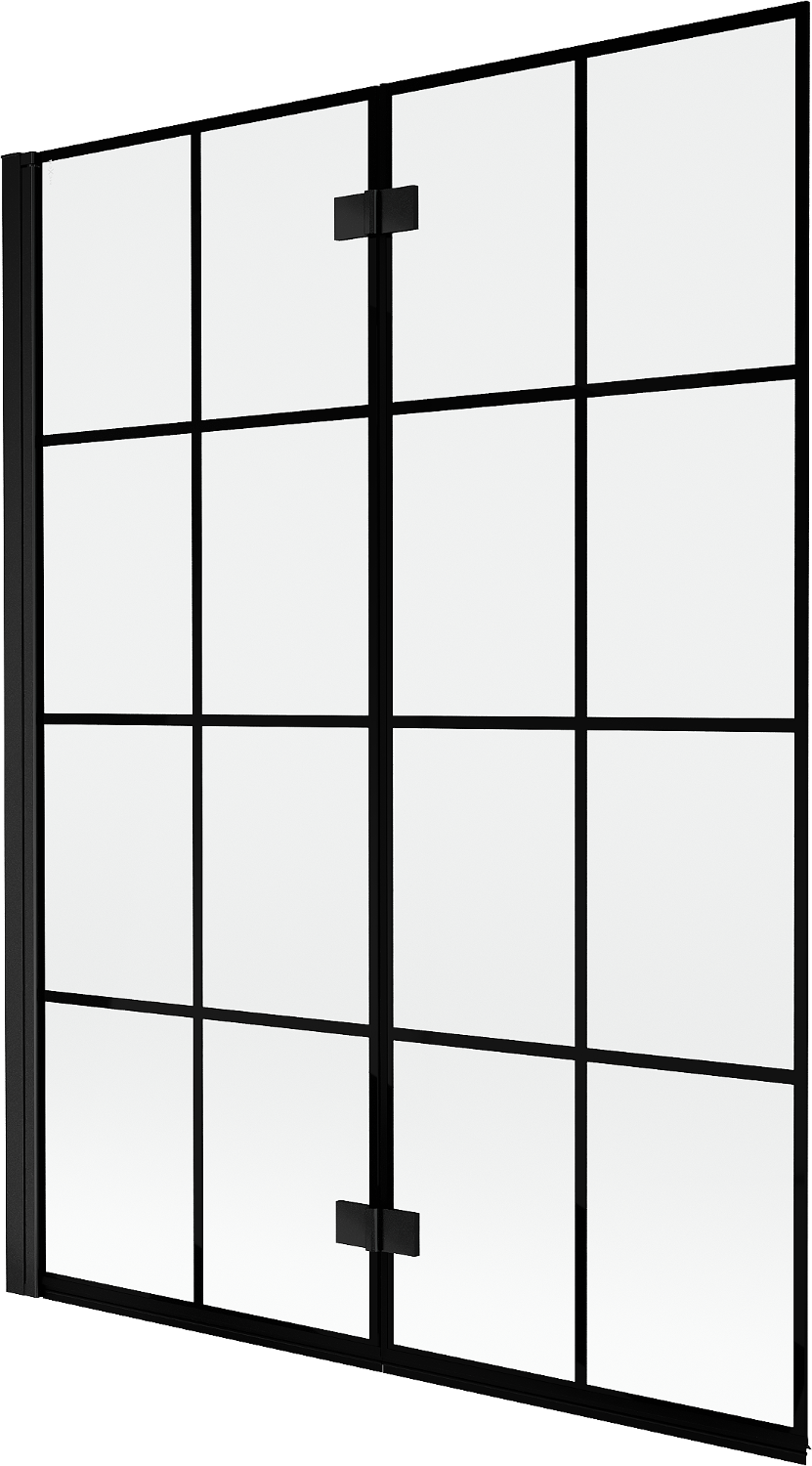 Scherm gemaakt van twee vleugels met de mogelijkheid om het op te vouwen. Deze oplossing bespaart meer ruimte in de badkamer en maakt het gemakkelijk om de overgebleven ruimte te gebruiken wanneer we de badzone niet gebruiken.