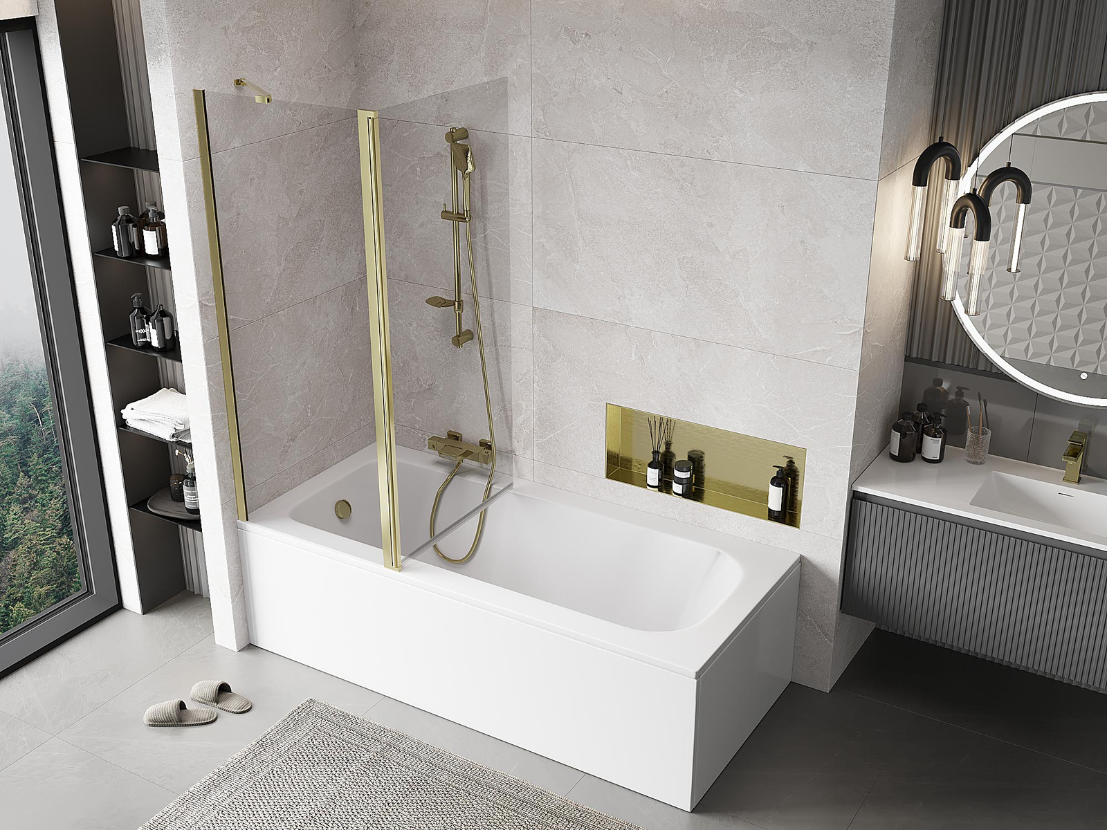 Effectieve bescherming tegen het verspreiden van water tijdens het baden. Het scherm heeft afdichtingen die perfect passen bij de glasplaat en de rand van het bad. Functionele oplossing die veiligheid en eenvoudig onderhoud garandeert.
