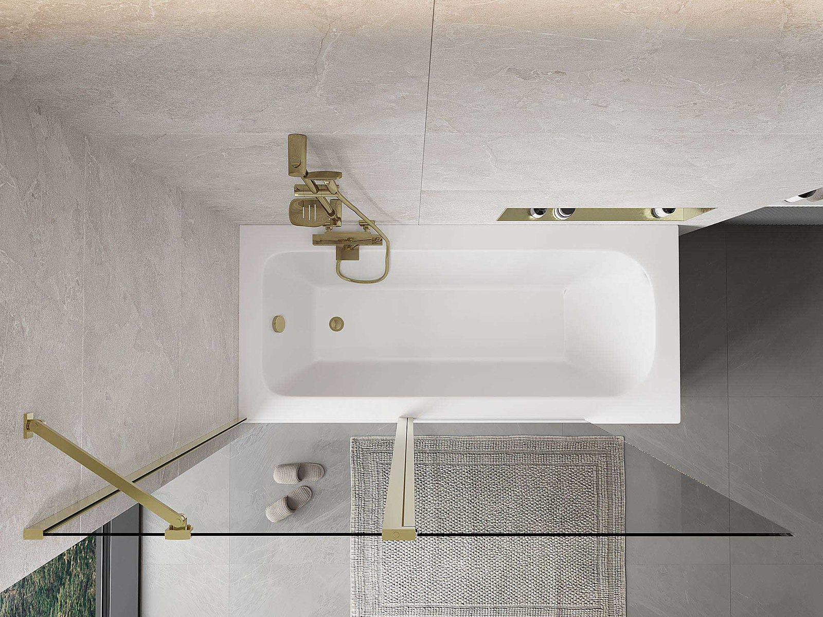 Scherm gemaakt van twee vleugels met de mogelijkheid om het op te vouwen. Deze oplossing bespaart meer ruimte in de badkamer en maakt het gemakkelijk om de overgebleven ruimte te gebruiken wanneer we de badzone niet gebruiken.