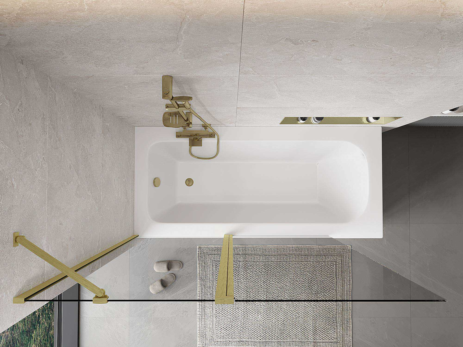 Scherm gemaakt van twee vleugels met de mogelijkheid om het op te vouwen. Deze oplossing bespaart meer ruimte in de badkamer en maakt het gemakkelijk om de overgebleven ruimte te gebruiken wanneer we de badzone niet gebruiken.
