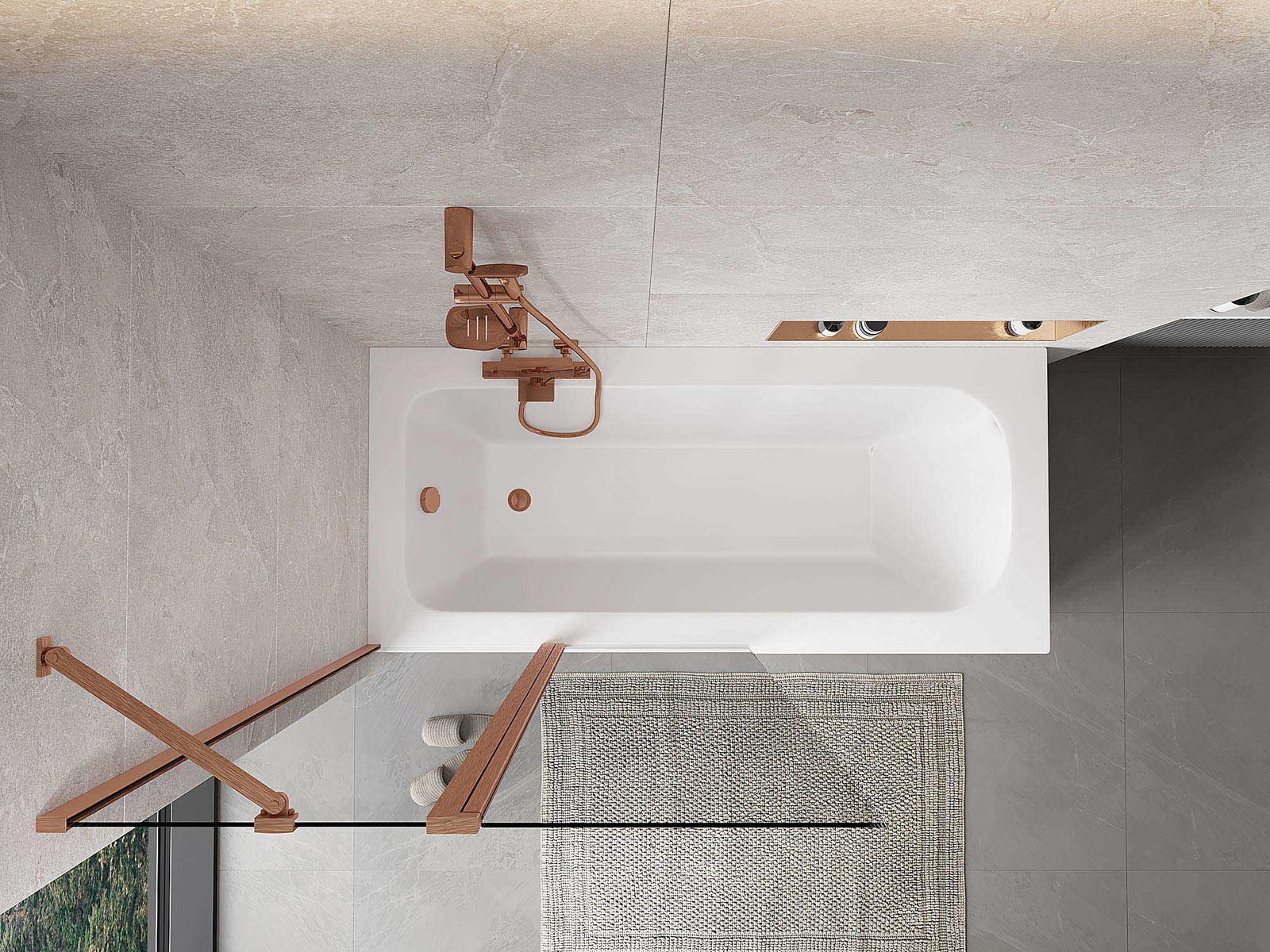 Mexen Mist badscherm 2-delig 100 x 150 cm, transparant, geborsteld koper - 8A9-100-011-65-00