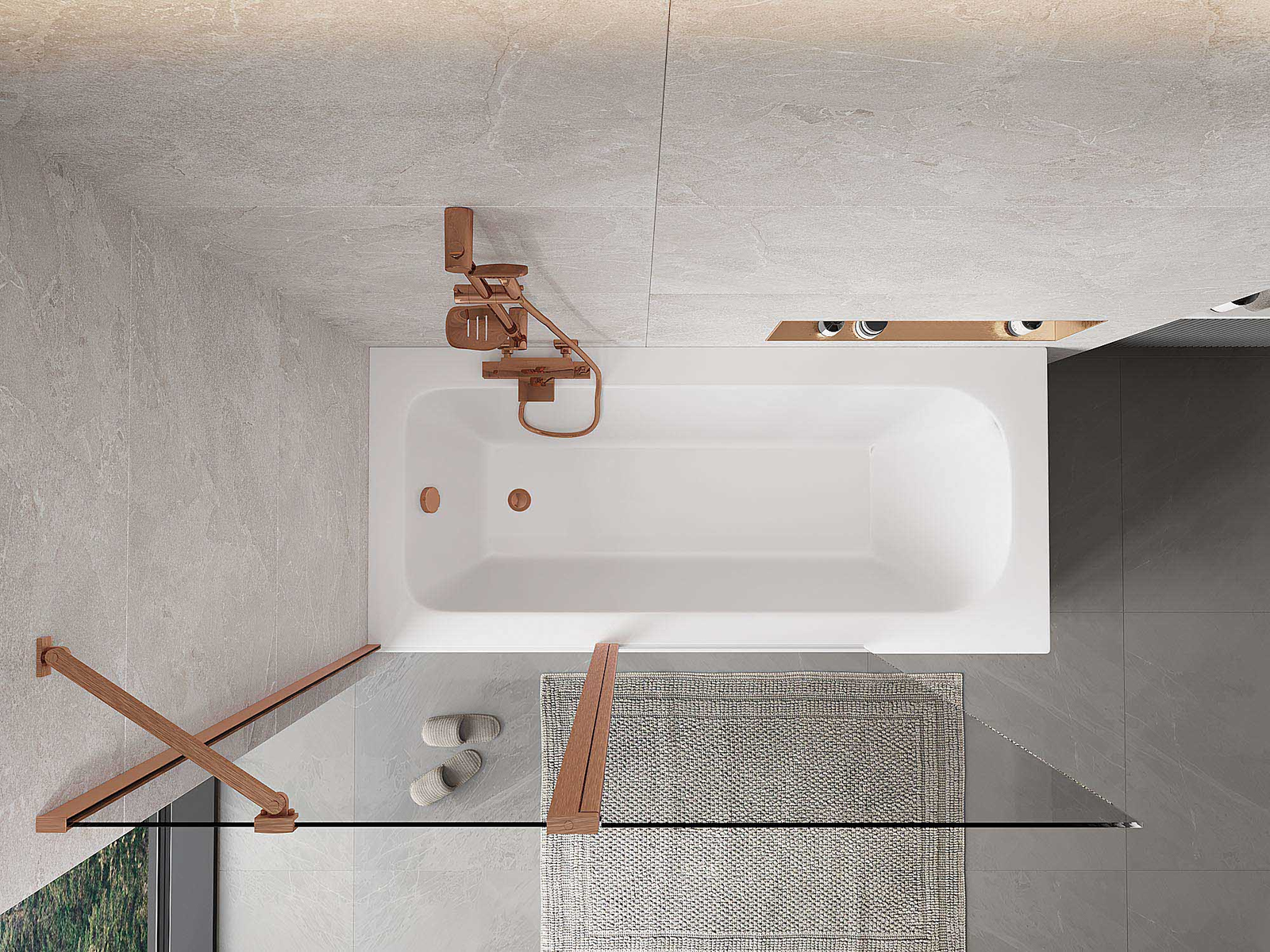 De badwand bestaat uit twee delen, een vaste wand en een draaibaar paneel