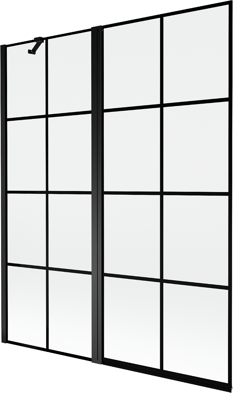 Scherm gemaakt van twee vleugels met de mogelijkheid om het op te vouwen. Deze oplossing bespaart meer ruimte in de badkamer en maakt het gemakkelijk om de overgebleven ruimte te gebruiken wanneer we de badzone niet gebruiken.