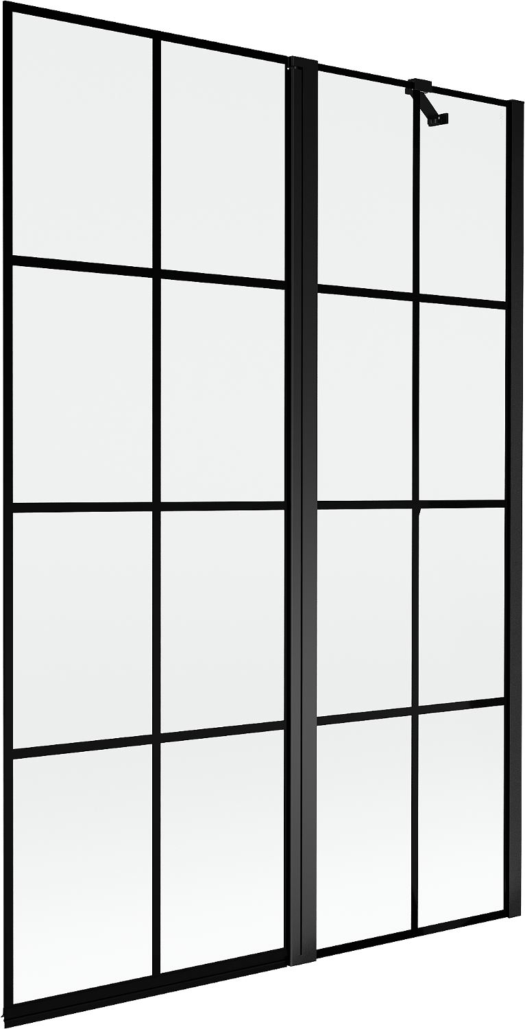 Scherm gemaakt van twee vleugels met de mogelijkheid om het op te vouwen. Deze oplossing bespaart meer ruimte in de badkamer en maakt het gemakkelijk om de overgebleven ruimte te gebruiken wanneer we de badzone niet gebruiken.