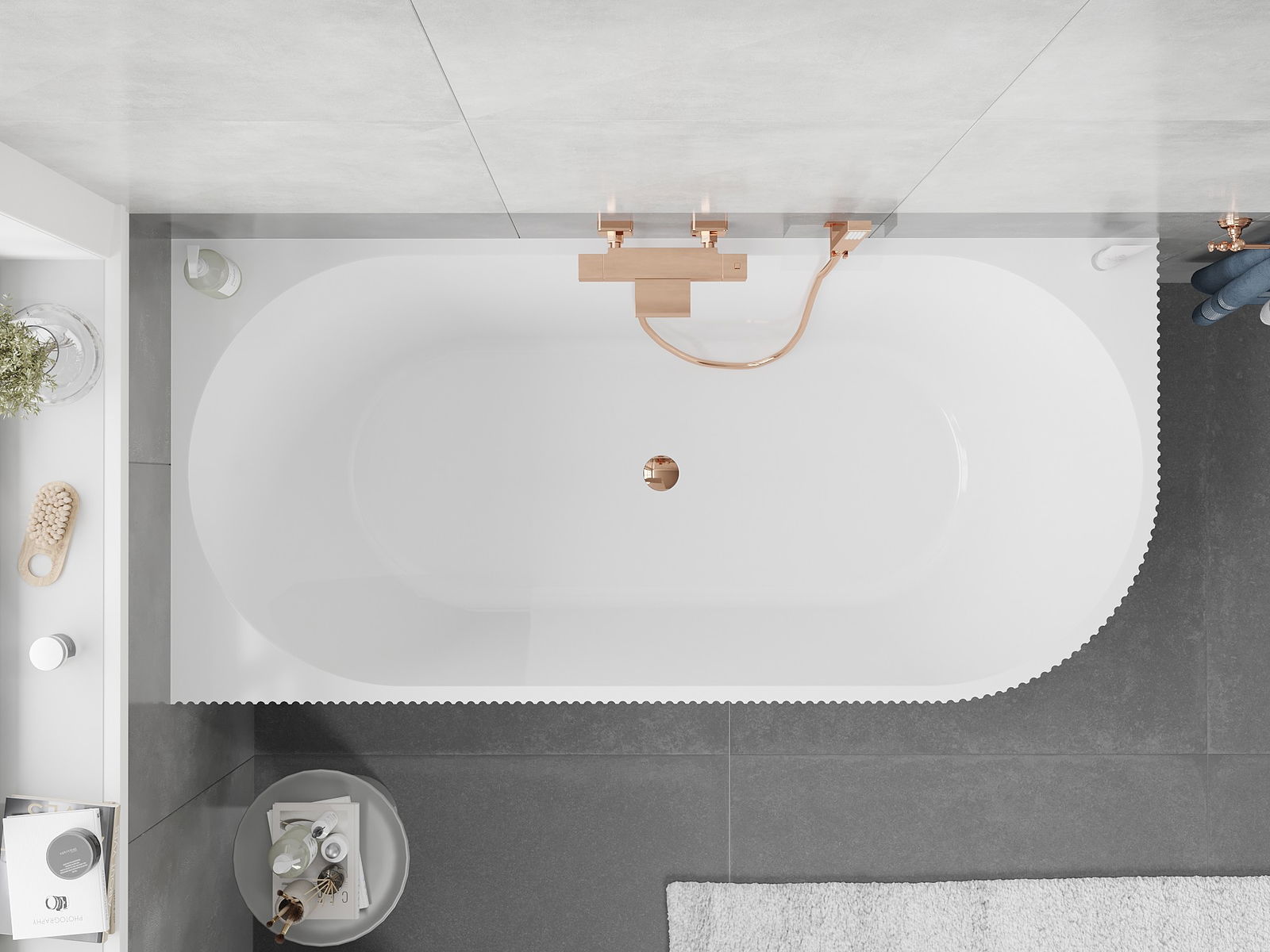 Het is een modern materiaal dat een elegante uitstraling combineert met hoge duurzaamheid. Het is bestand tegen mechanische beschadigingen, gemakkelijk schoon te maken en aangenaam om aan te raken. De transparante vorm en de dunne rand van het bad geven het een gevoel van lichtheid en een uniek karakter, waardoor het een opvallend accent vormt in de badkamerinrichting.