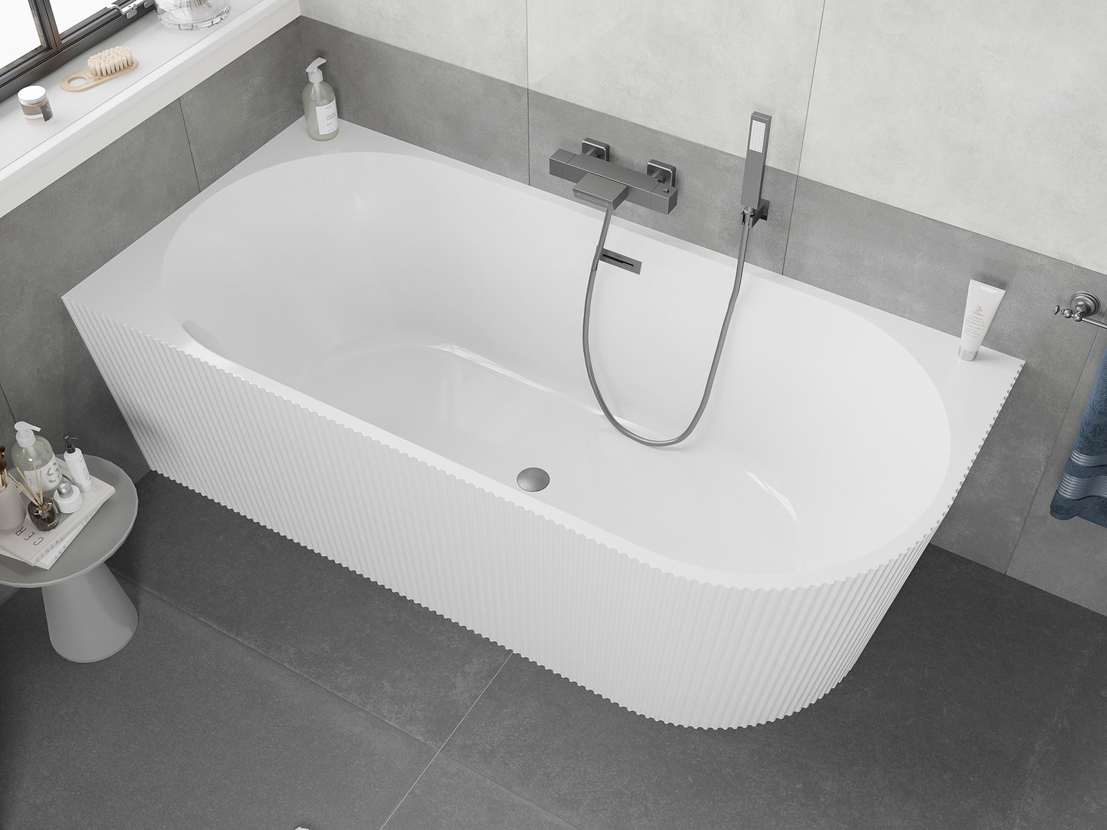 Dit moderne materiaal combineert een elegante uitstraling met een hoge duurzaamheid. Het is bestand tegen mechanische beschadigingen, gemakkelijk schoon te maken en voelt prettig aan. De transparante vorm en dunne rand van het bad geven het een licht en uniek karakter, wat een opvallende accentuering in de badkamer creëert.