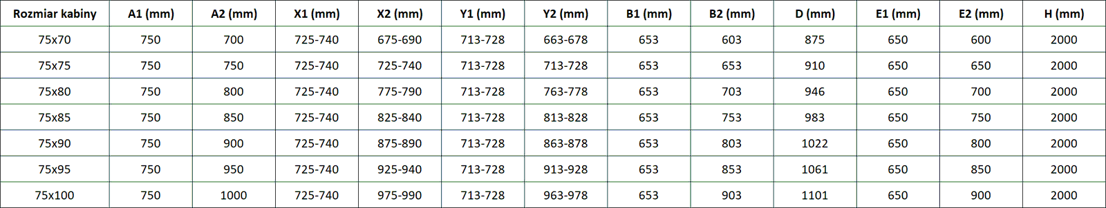 Draaideuren bieden maximale vrijheid tijdens het gebruik. Ze hebben stevige scharnieren gemaakt van duurzaam materiaal, die gemakkelijk schoon te houden zijn en gemakkelijke toegang tot het interieur van de cabine bieden.