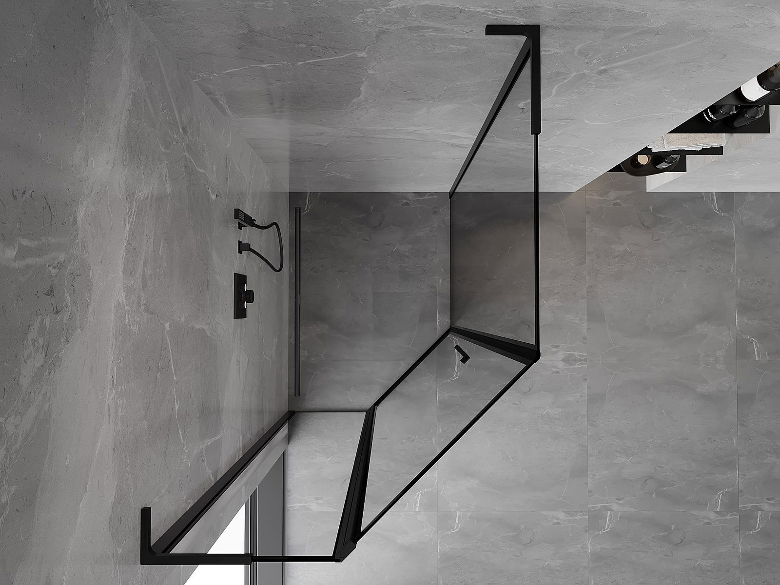 Mexen Mist L asymmetrische vijfhoekige douchecabine links scharnierend 80 x 90 cm, zwart frame, zwart - 8A8L-080-090-70-70-L