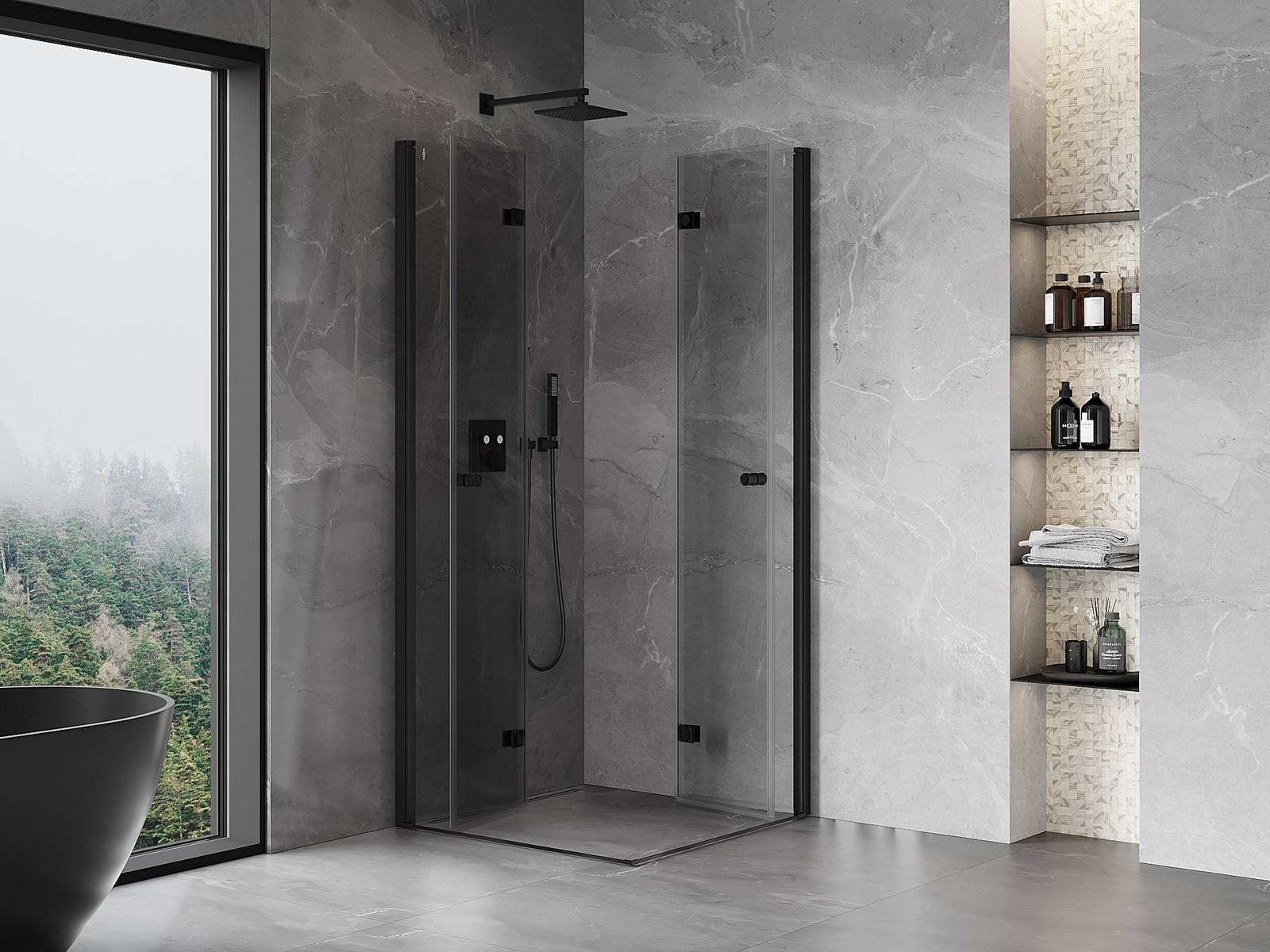 Handige en comfortabele greep is gemaakt van duurzaam en weerbestendig metaal. De modieuze vorm in combinatie met een afwerking die past bij de kleur van de profielen geeft het geheel een moderne en stijlvolle uitstraling, wat de esthetiek van elke badkamer benadrukt.