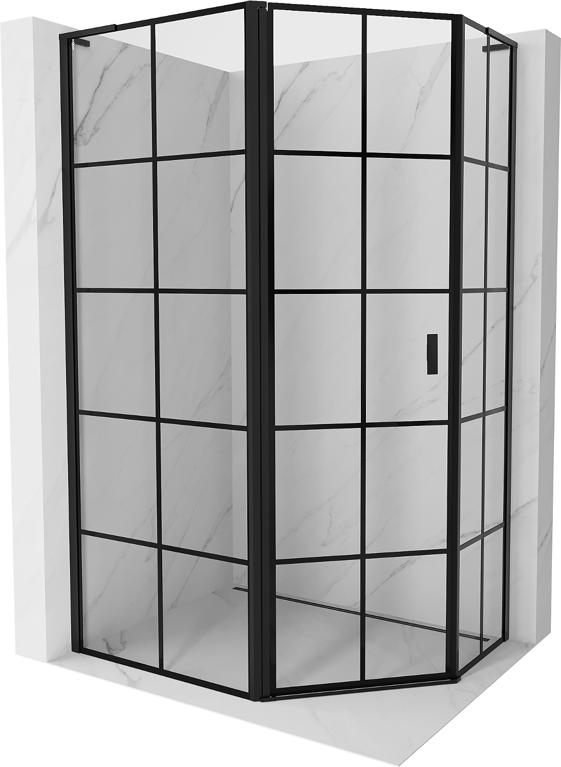 Mexen Mist L asymmetrische vijfhoekige douchecabine links 90 x 80 cm, zwart raster, zwart - 8A8L-090-080-70-77-L