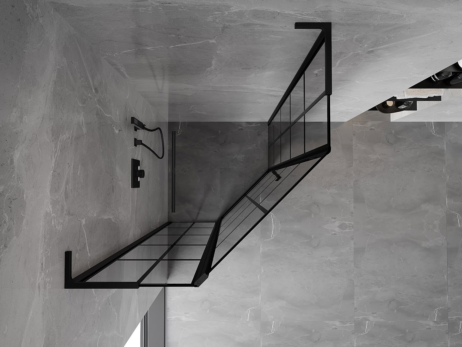 Mexen Mist L vijfhoekige draaibare linker douchecabine 100 x 100 cm, zwart rooster, zwart - 8A8L-100-100-70-77-L