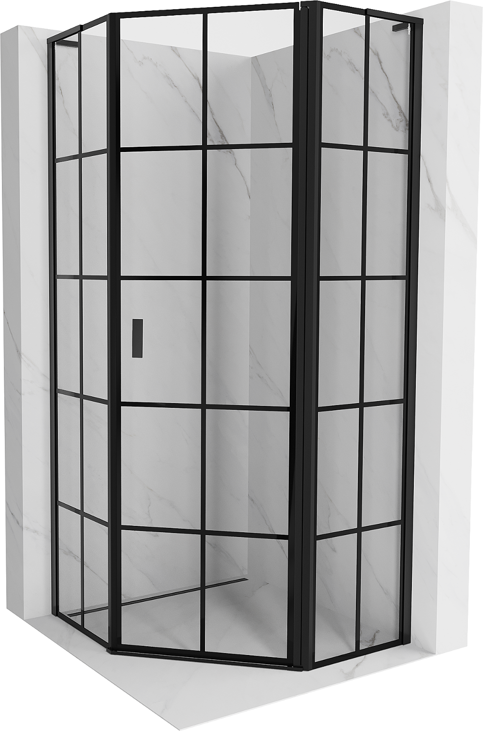 Mexen Mist L vijfhoekige douchecabine scharnierend rechts 80 x 80 cm, zwart raster, zwart - 8A8L-080-080-70-77-P